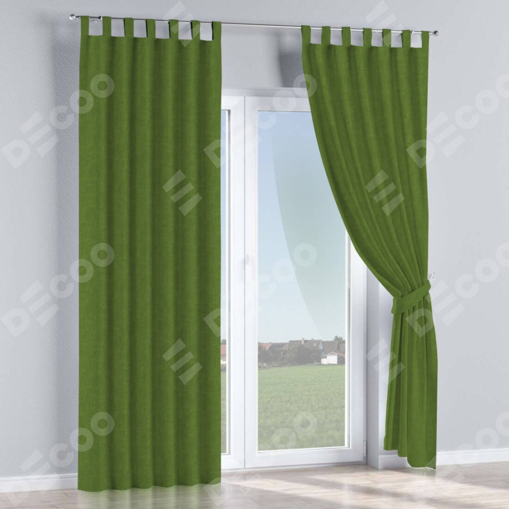 Комплект прямых штор, от производителя «Cortin», пошиты из ткани канвас трава, артикул ткани v-473. Данная модель пошита на петлях, комплектуется на выбор круглым карнизом и подходит для монтажа на стену или потолок. Прямые шторы на петлях шьются по стандарту с коэффициентом 1/2 (на 100 см. ширины проёма 200 см. ширины ткани), отличительным преимуществом данной модели является простой способ монтажа. Достаточно повесить ее на трубу и штора готова!