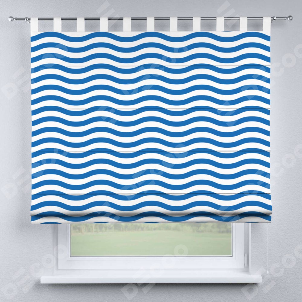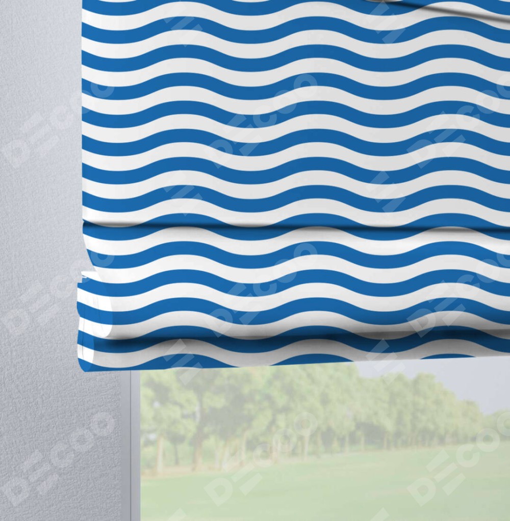 Римская штора производителя «Cortin», используется для проёма, пошита из ткани блэкаут с нанесением сублимационной печати «Волнистые линии». Данная модель пошита на петлях, комплектуется на выбор круглым карнизом и подходит для монтажа на стену. Римская штора на петлях имеет простую систему регулировки высоты, отличительным преимуществом данной модели является простой способ монтажа. Достаточно повесить ее на трубу и штора готова!