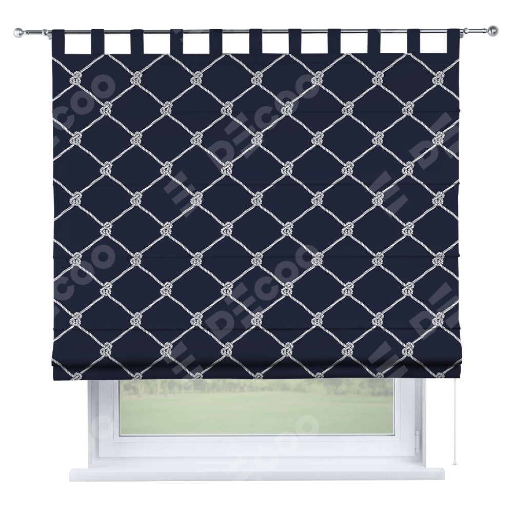 Римская штора производителя «Cortin», используется для проёма, пошита из ткани блэкаут с нанесением сублимационной печати «Морские веревки». Данная модель пошита на петлях, комплектуется на выбор круглым карнизом и подходит для монтажа на стену. Римская штора на петлях имеет простую систему регулировки высоты, отличительным преимуществом данной модели является простой способ монтажа. Достаточно повесить ее на трубу и штора готова!