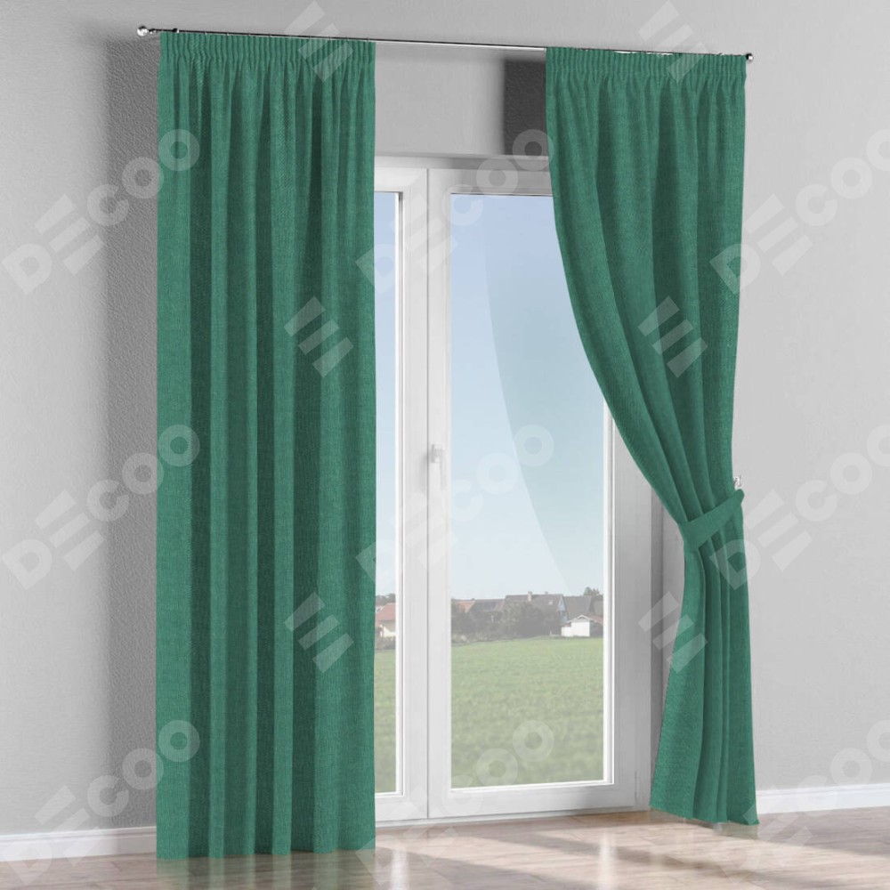 Комплект прямых штор, от производителя «Cortin», пошиты из ткани лён димаут светло-бирюзовый, артикул ткани 91005. С изнаночной стороны в верхней части штор пристрачивается шторная лента с декоративными складками «Карандаш». Для создания элегантных складок прямые шторы шьются по стандарту с коэффициентом 1:2 (на 100 см. ширины проёма 200 см. ширины ткани).