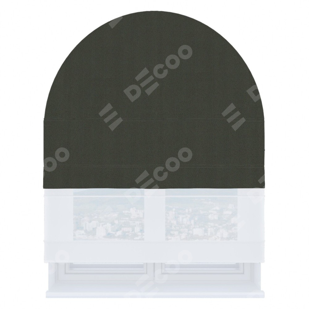 Римская штора день-ночь производителя «Cortin», используется для арочного проёма, пошита из двух полотен, с лицевой стороны блэкаут однотонный дымчато-серый артикул 91571−1, вторая ткань тюль (по стандарту комплектуется тюль белого цвета артикул V-01). Штора шьётся по индивидуальным размерам, для данного типа римской шторы возможная ширина от 60 до 300 см. Удобное управление каждой шторой отдельно.