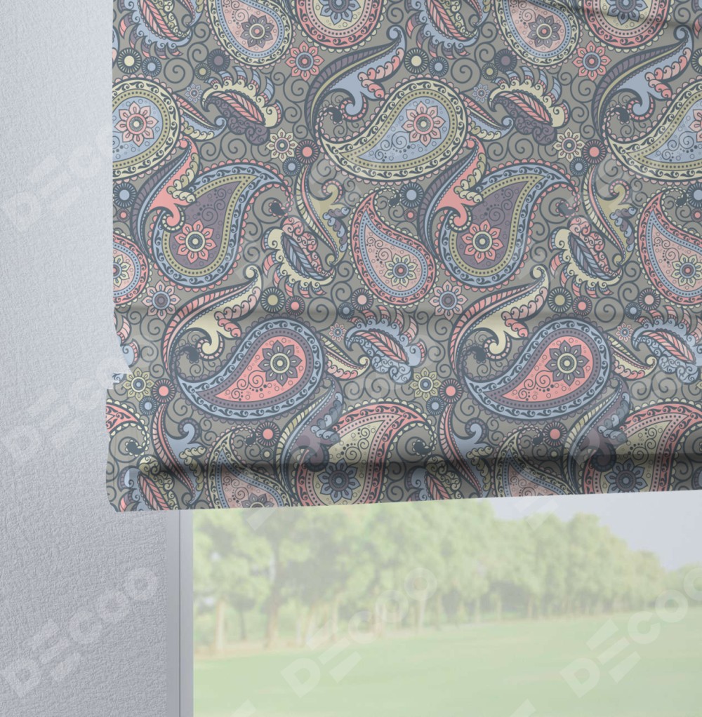 Римская штора «Кортин» на петлях «Цветной пейсли»