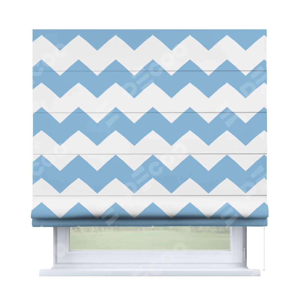 Римская штора производителя «Cortin», используется для проёма, пошита из ткани блэкаут с нанесением сублимационной печати «Зигзаг крупный». Имеет универсальный механизм и подходит для монтажа: на потолок, на стену и в нишу.