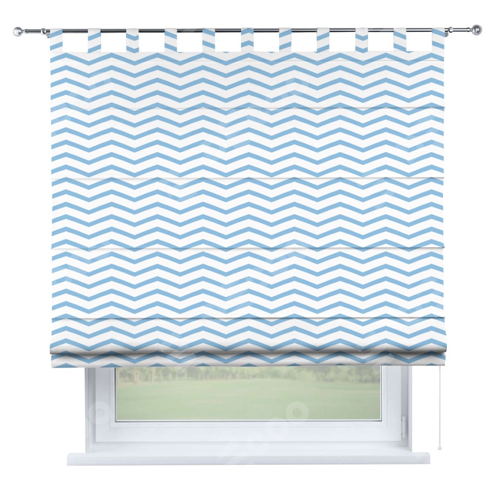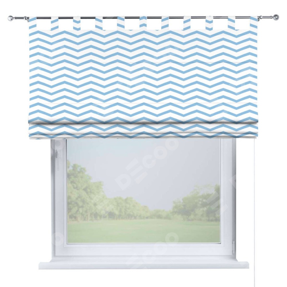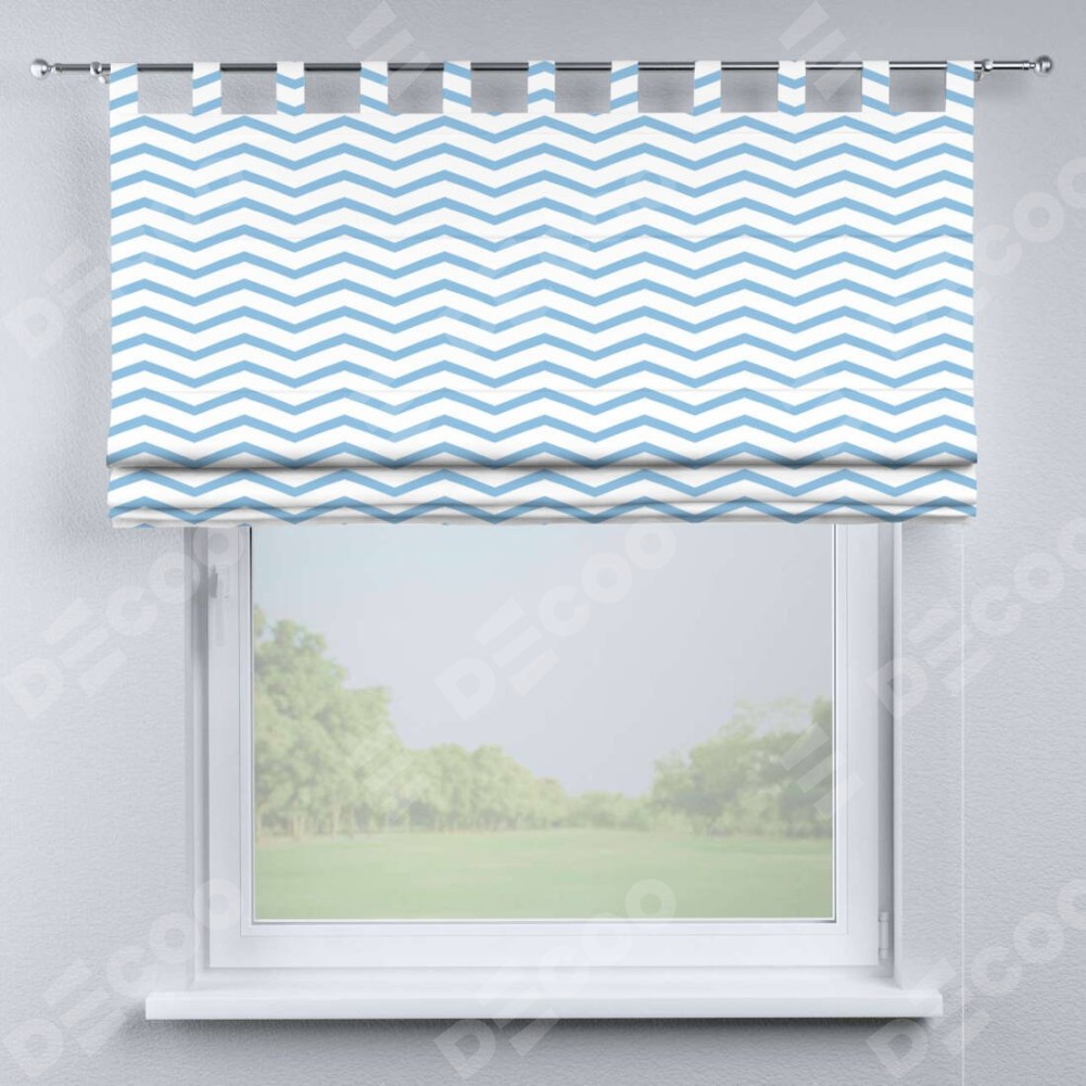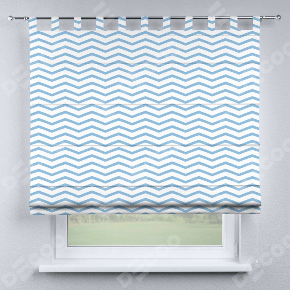 Римская штора производителя «Cortin», используется для проёма, пошита из ткани блэкаут с нанесением сублимационной печати «Зигзаг мелкий». Данная модель пошита на петлях, комплектуется на выбор круглым карнизом и подходит для монтажа на стену. Римская штора на петлях имеет простую систему регулировки высоты, отличительным преимуществом данной модели является простой способ монтажа. Достаточно повесить ее на трубу и штора готова!