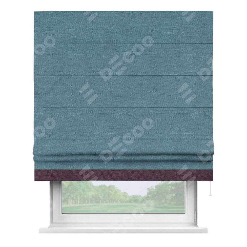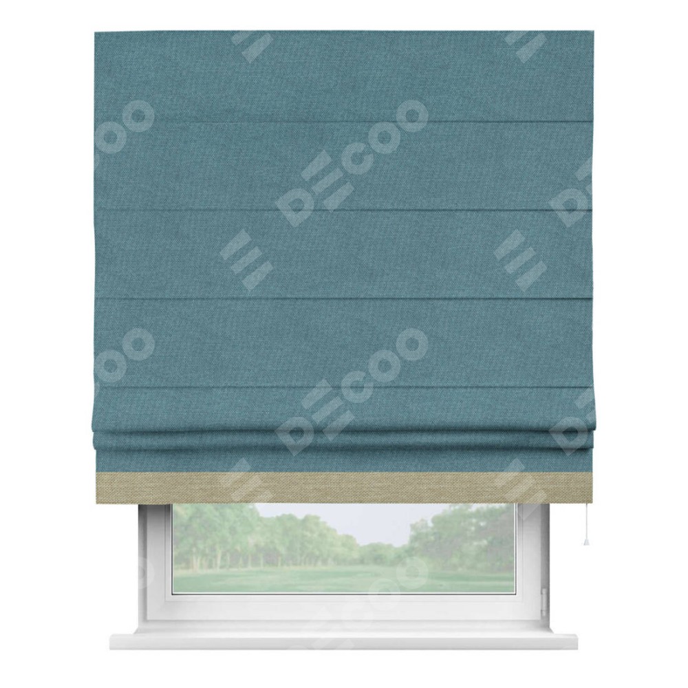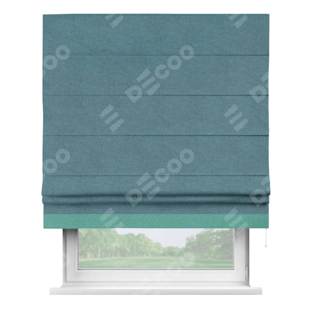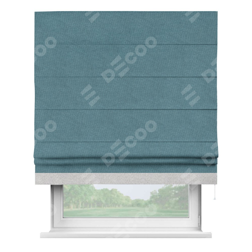 Римская штора «Кортин» для проема, лён димаут светло-синий с кантом Джестер