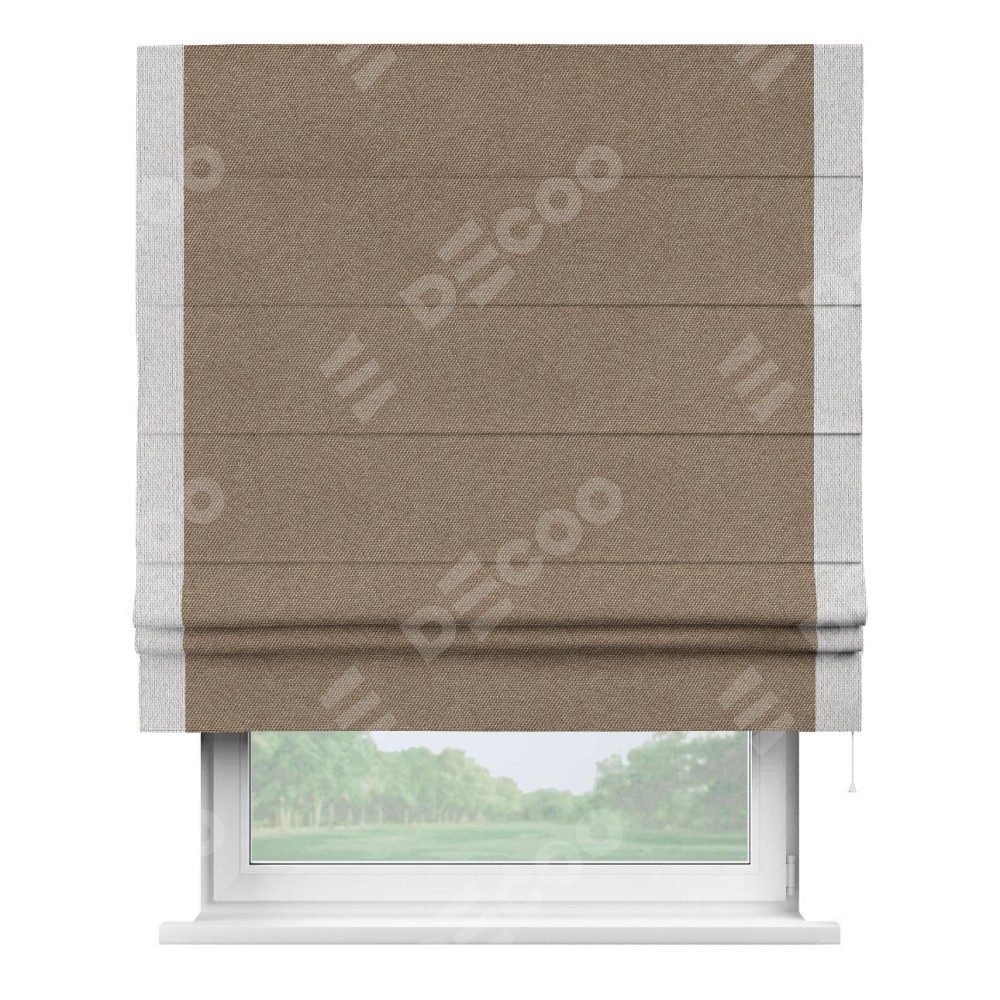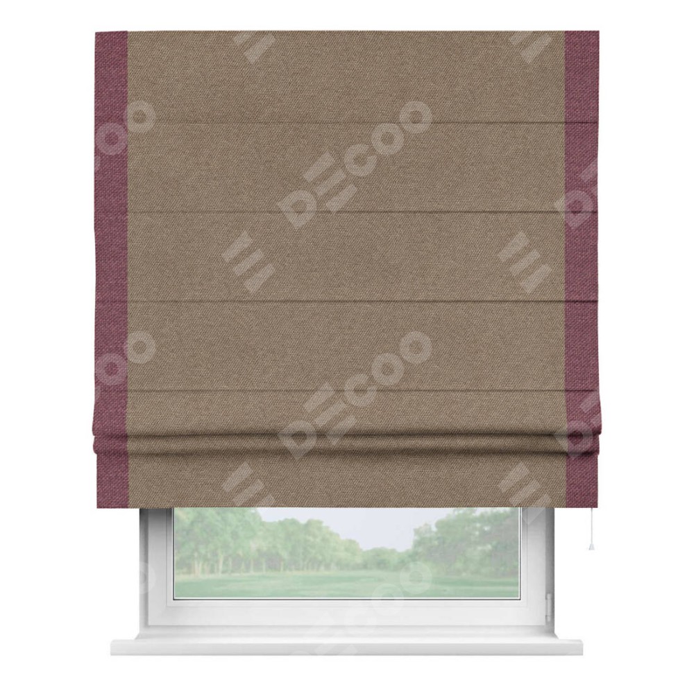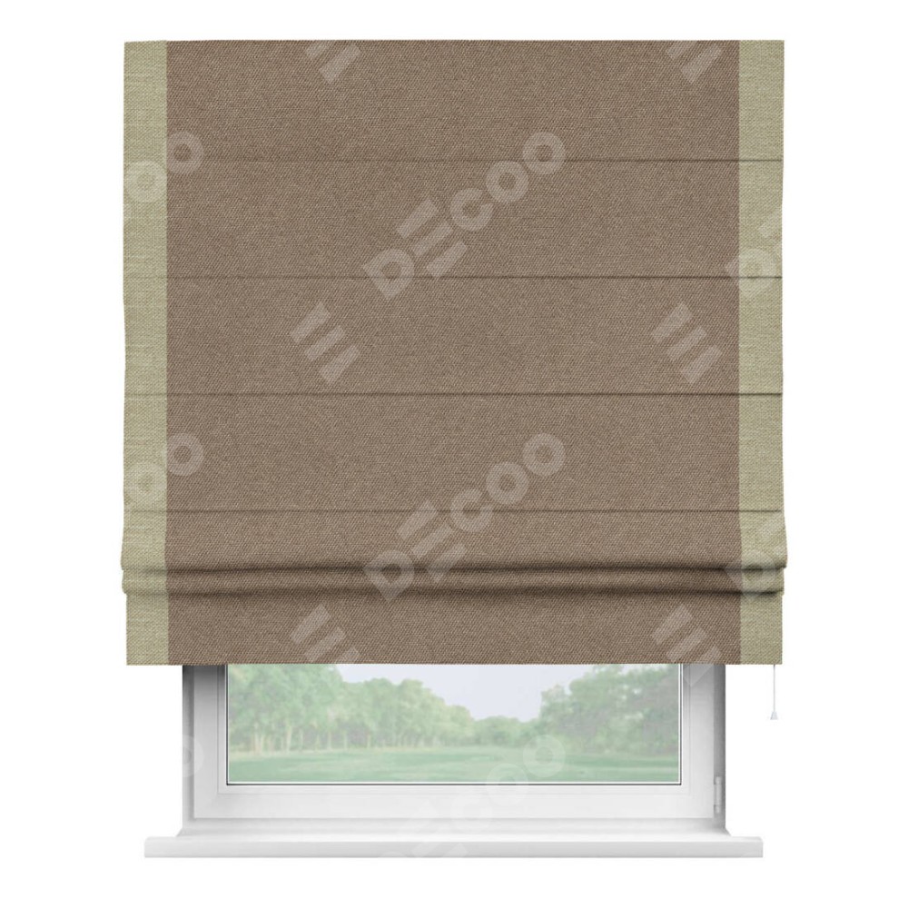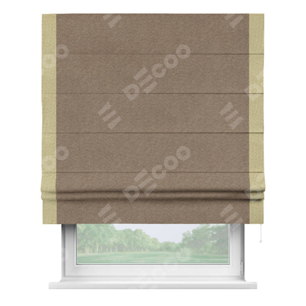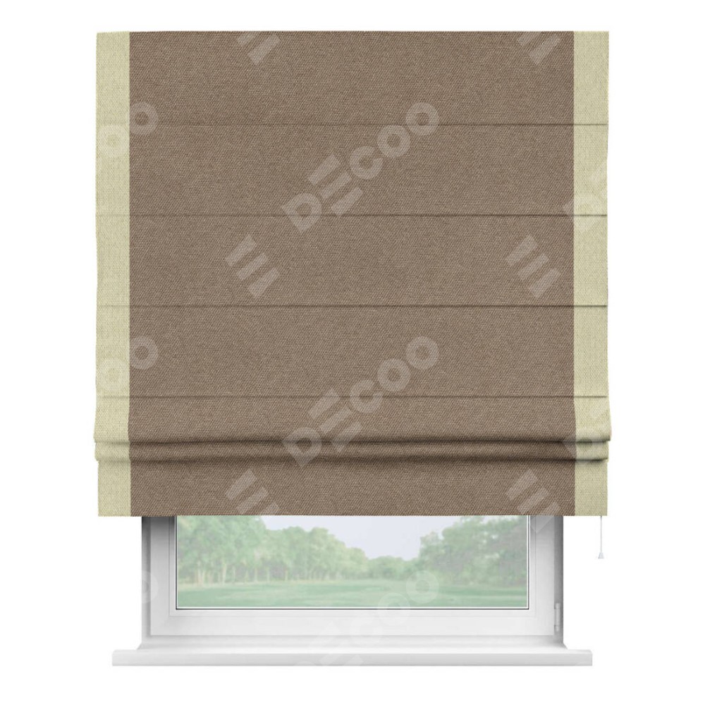 Римская штора «Кортин» для проема, лён димаут коричневый с кантом Стрим Дуо