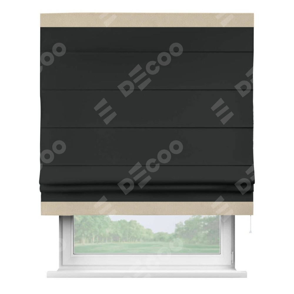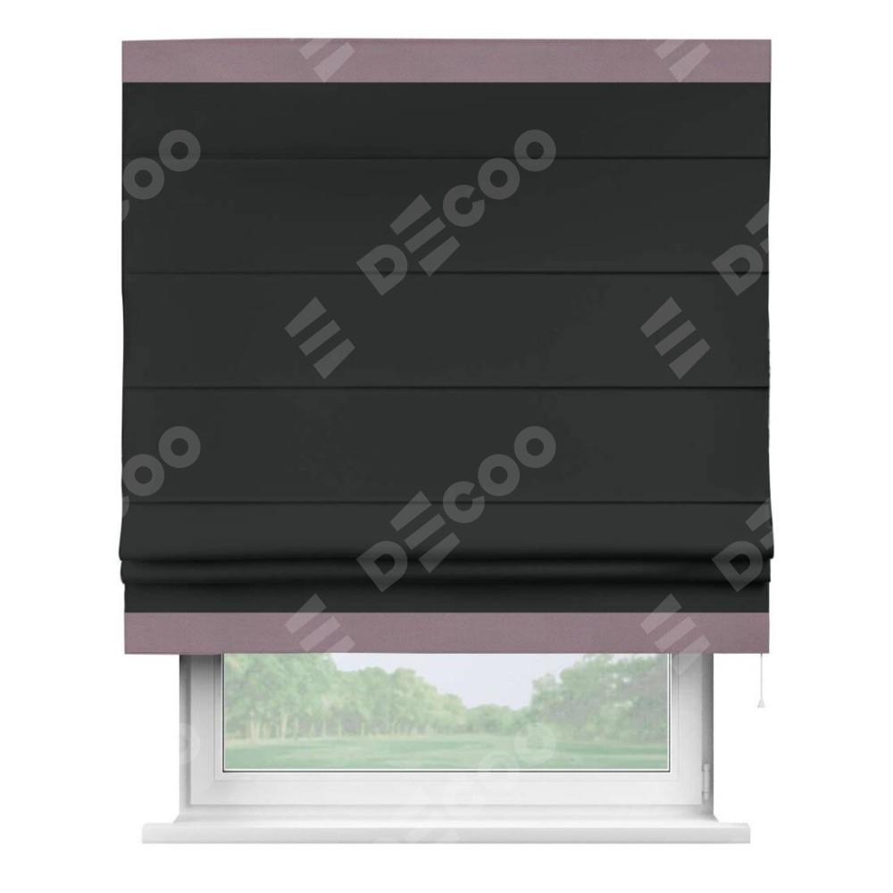 Римская штора «Кортин» для проема, блэкаут однотонный черный с кантом Горизонт