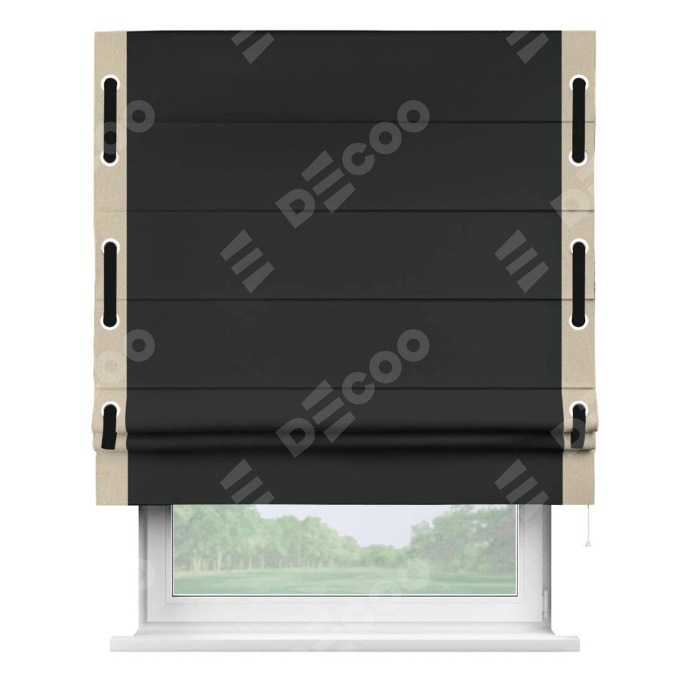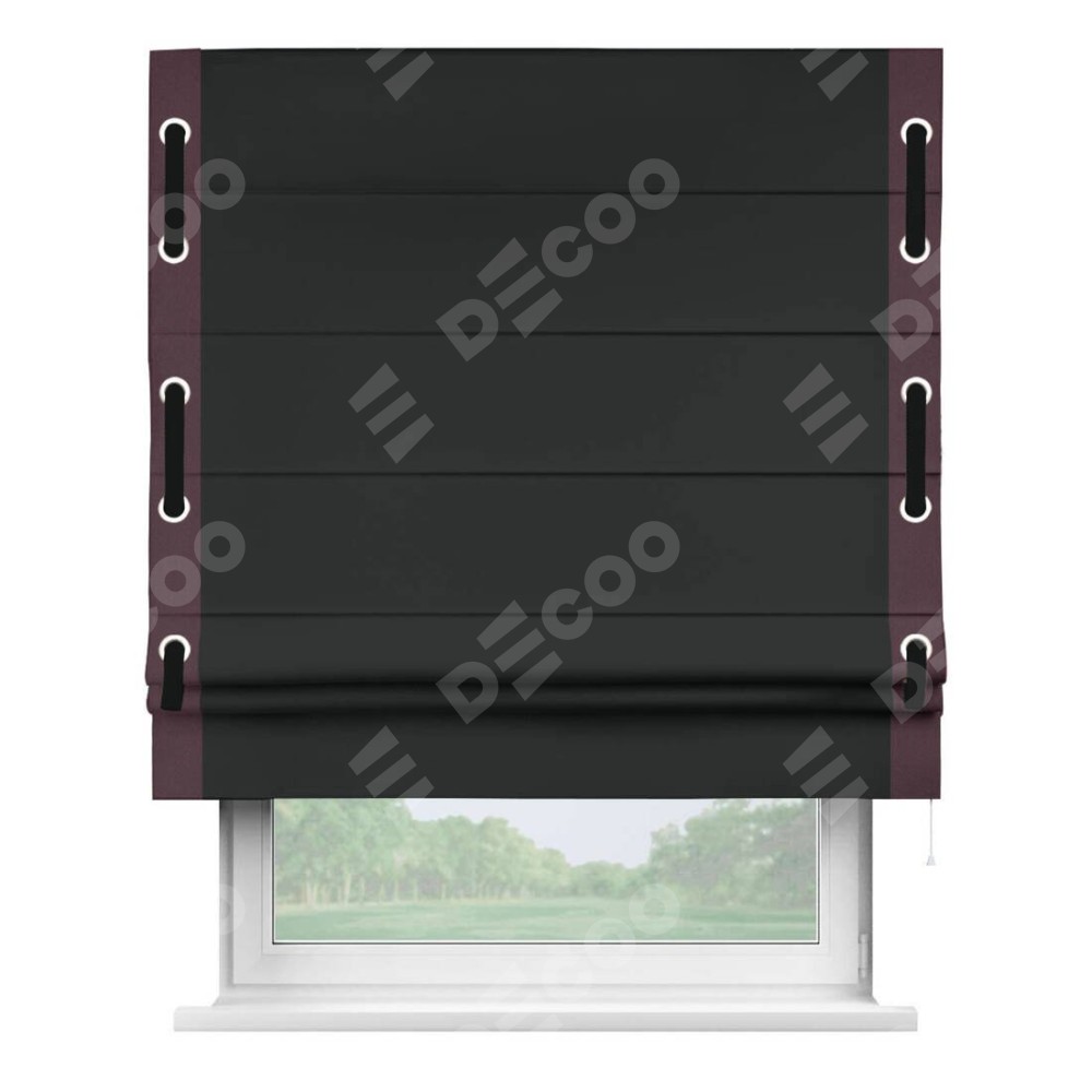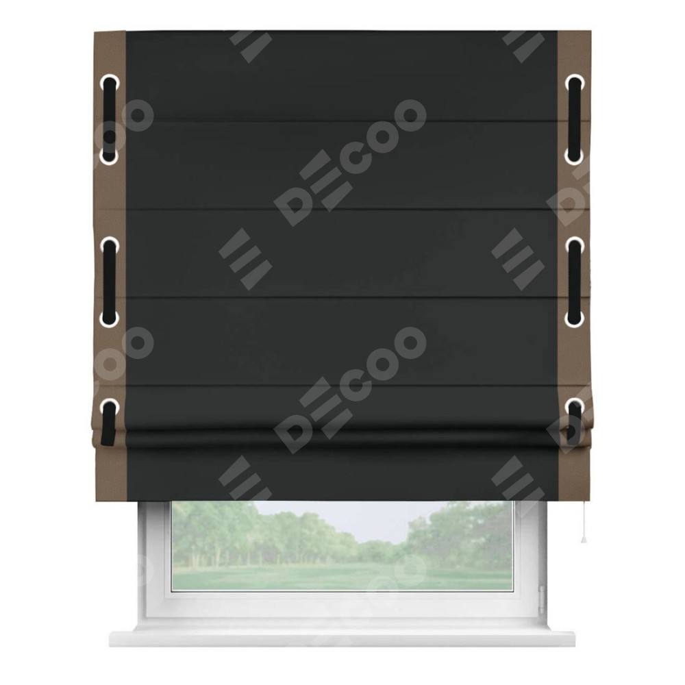 Римская штора «Кортин» для проема, блэкаут однотонный черный с кантом Стрим Дуо (люверсы с пояском)