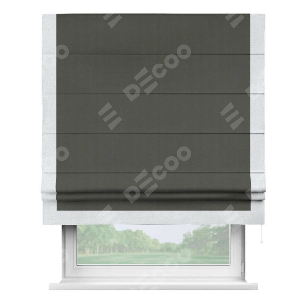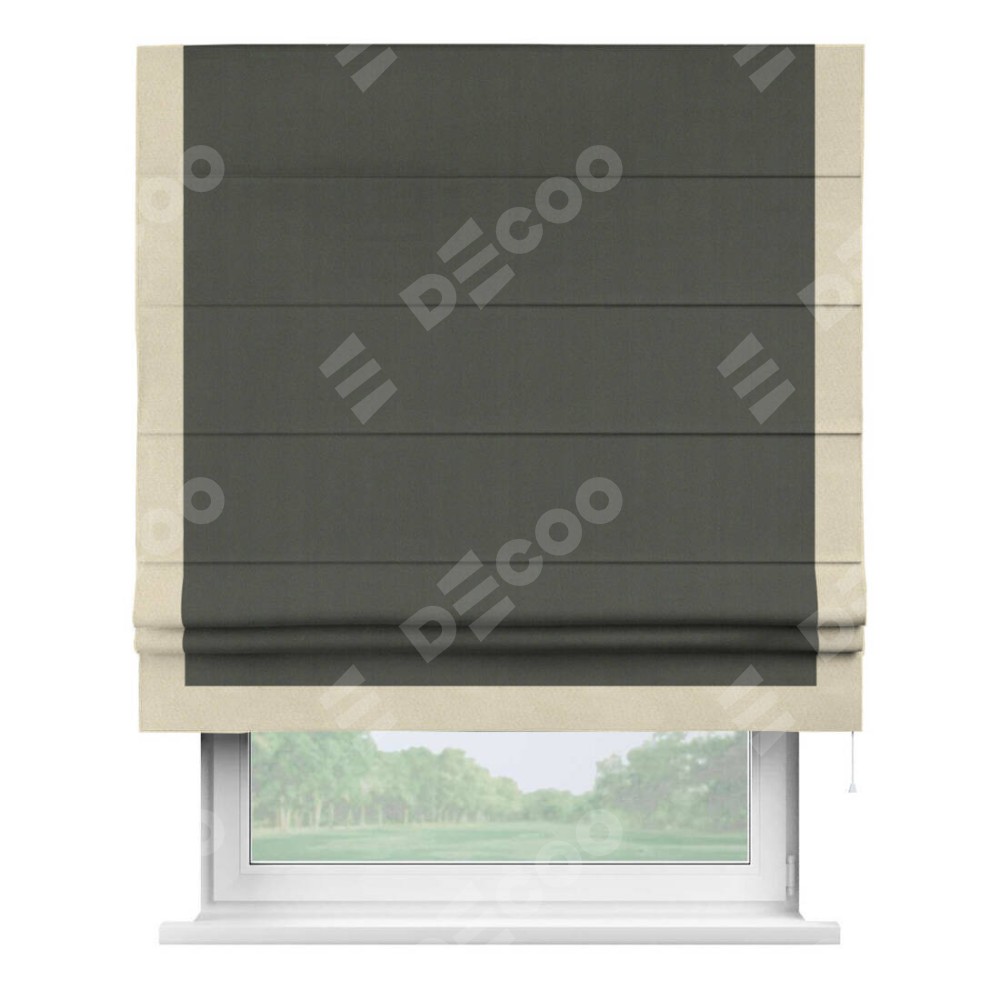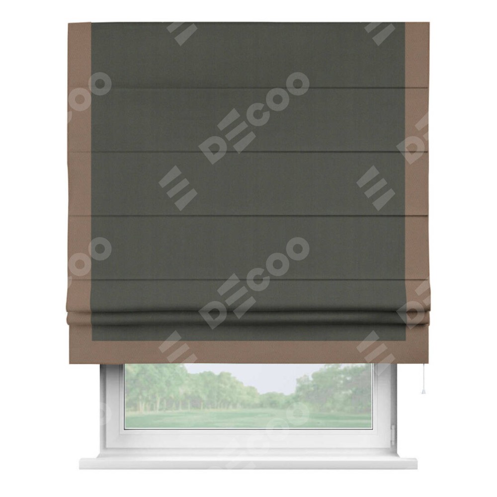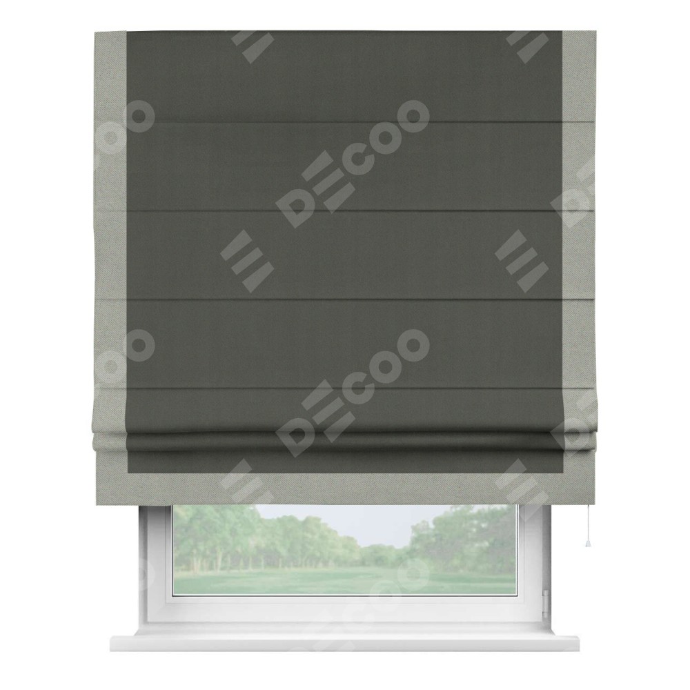 Римская штора «Кортин» для проема, блэкаут однотонный дымчато-серый с кантом Виктория