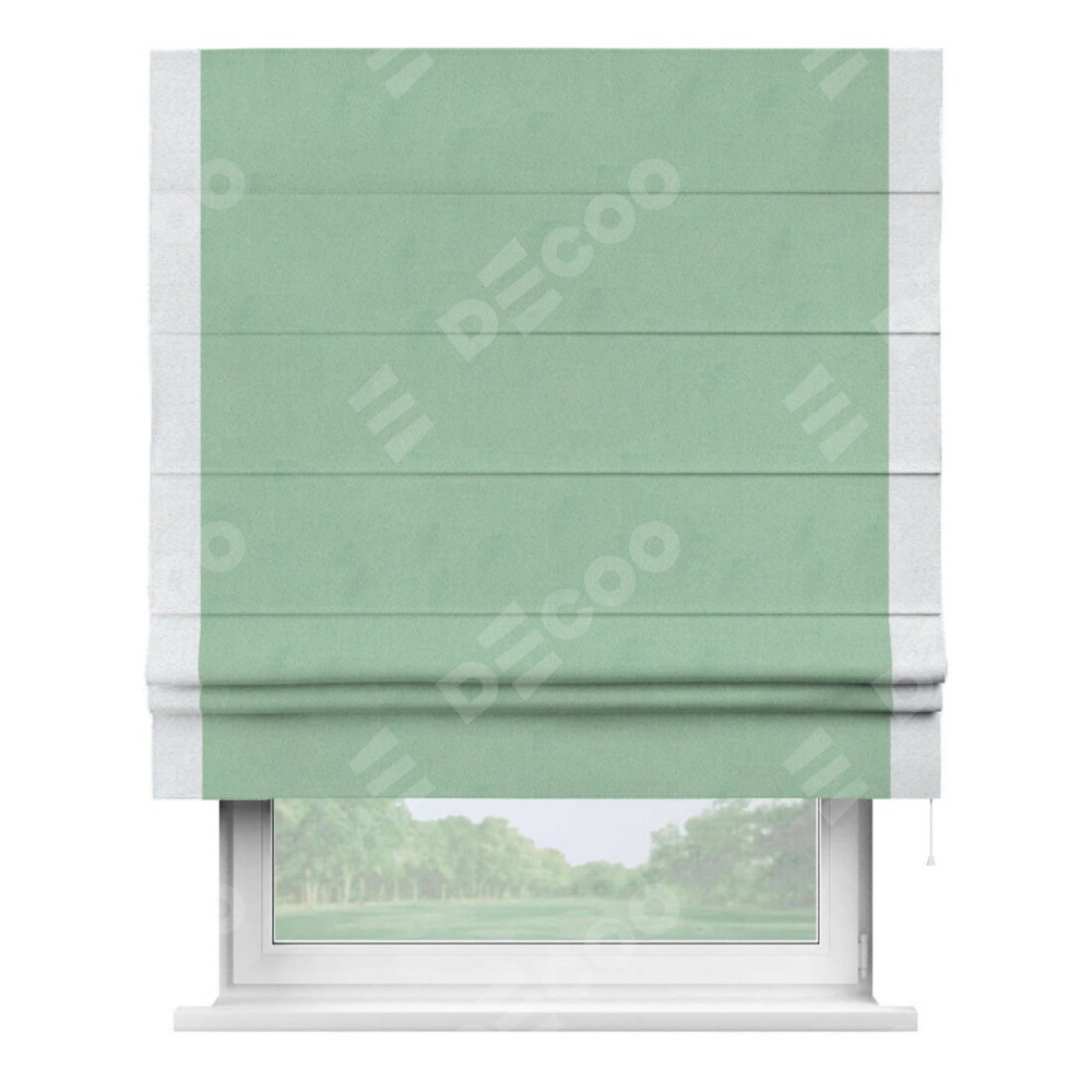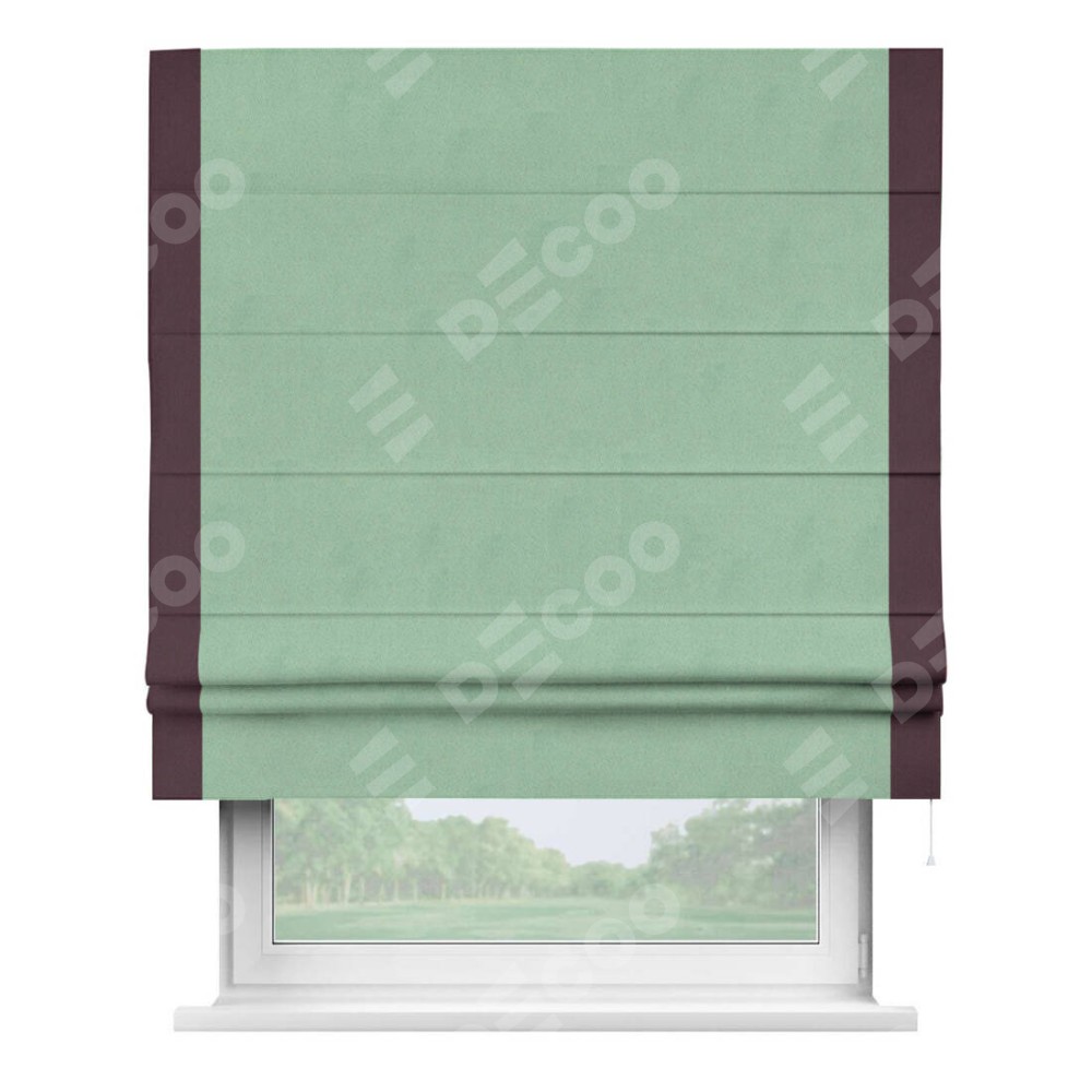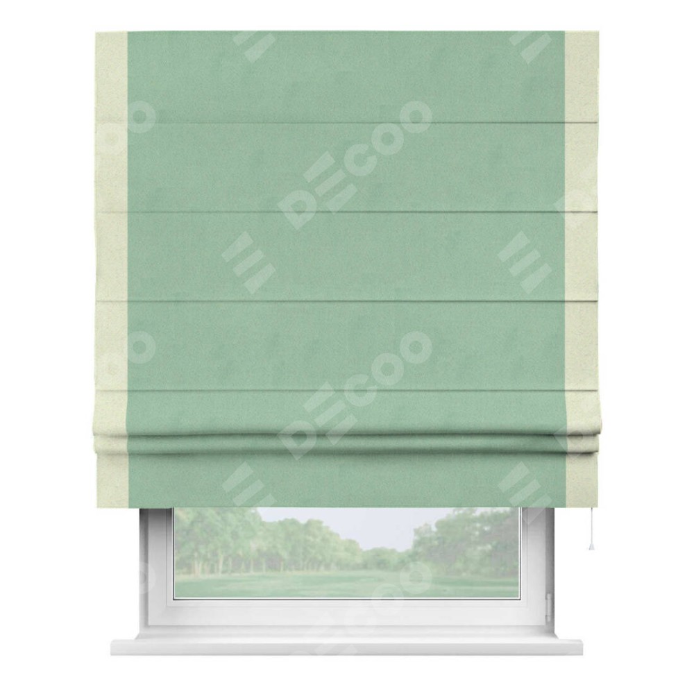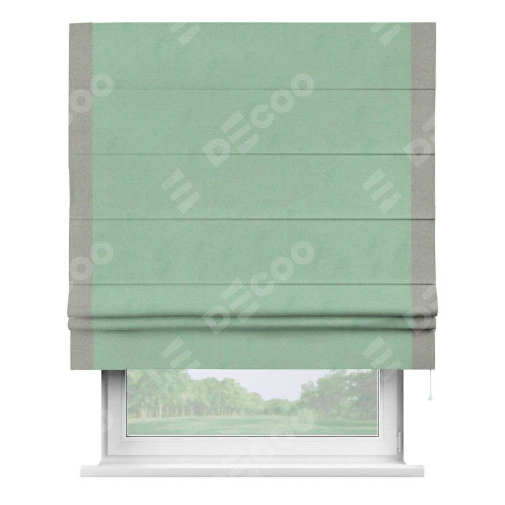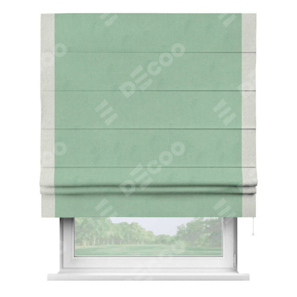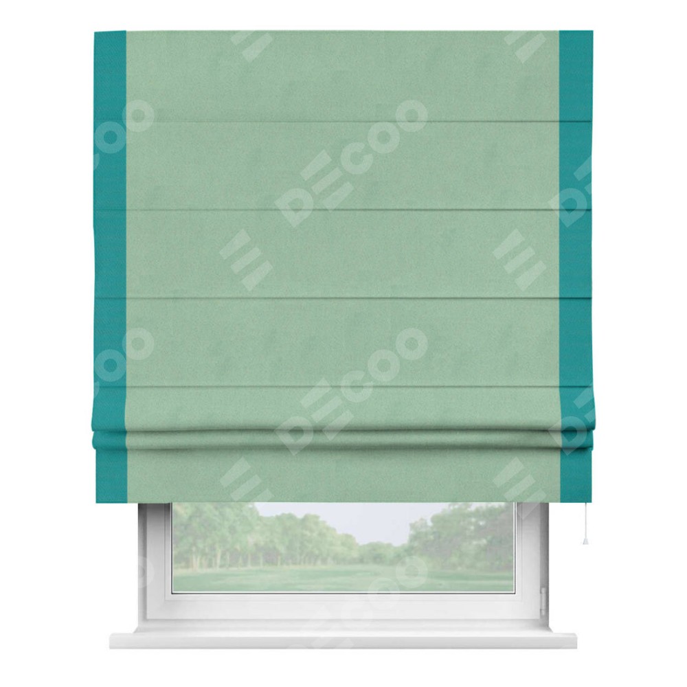 Римская штора «Кортин» для проема, блэкаут однотонный ментоловый с кантом Стрим Дуо
