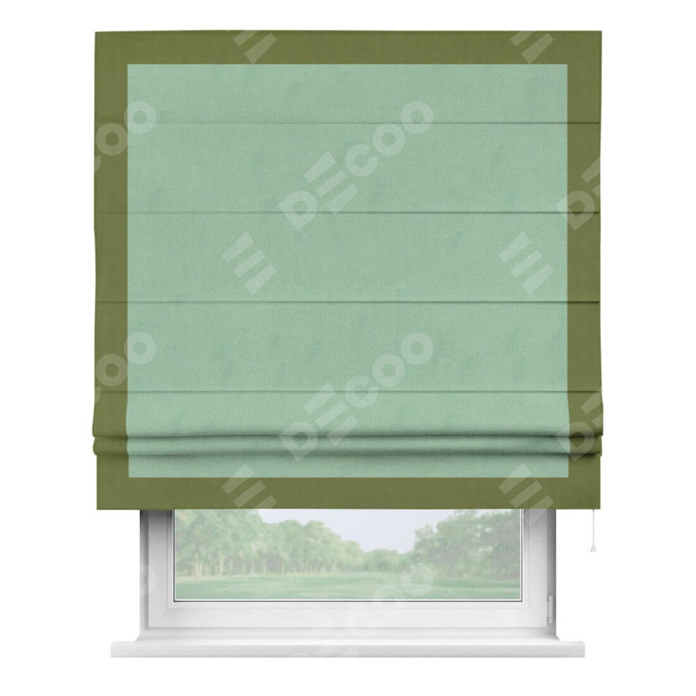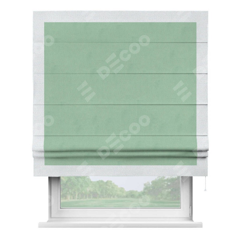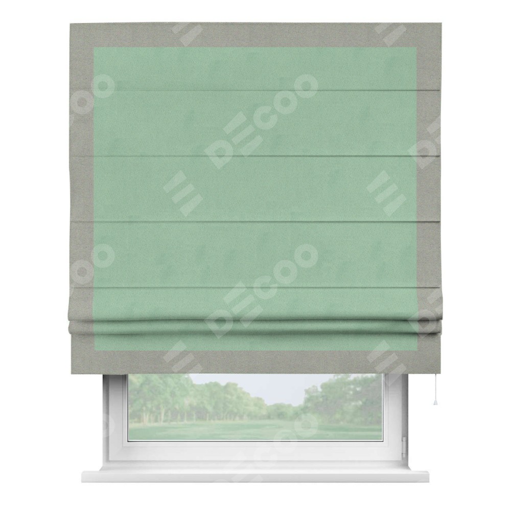 Римская штора «Кортин» для проема, блэкаут однотонный ментоловый с кантом Чесс