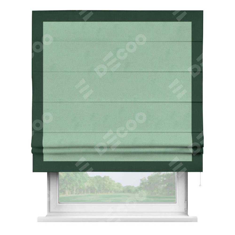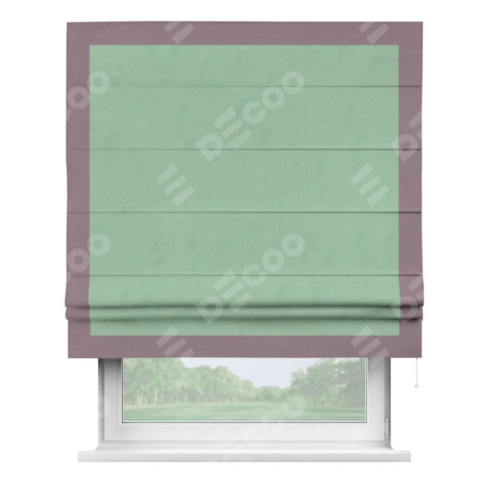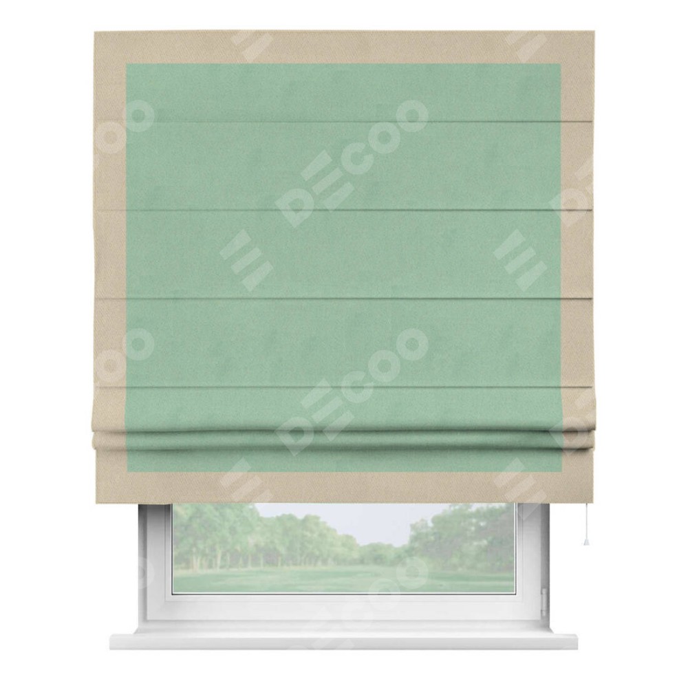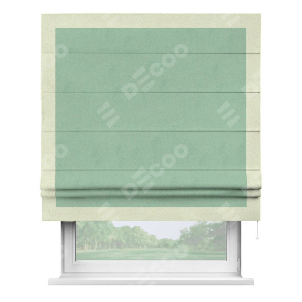 Римская штора «Кортин» для проема, блэкаут однотонный ментоловый с кантом Чесс