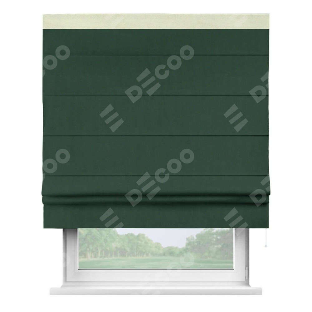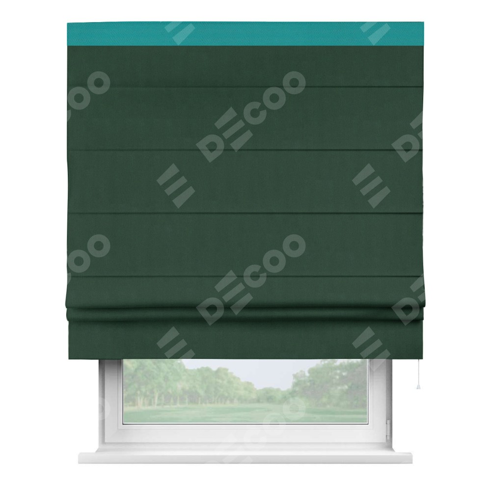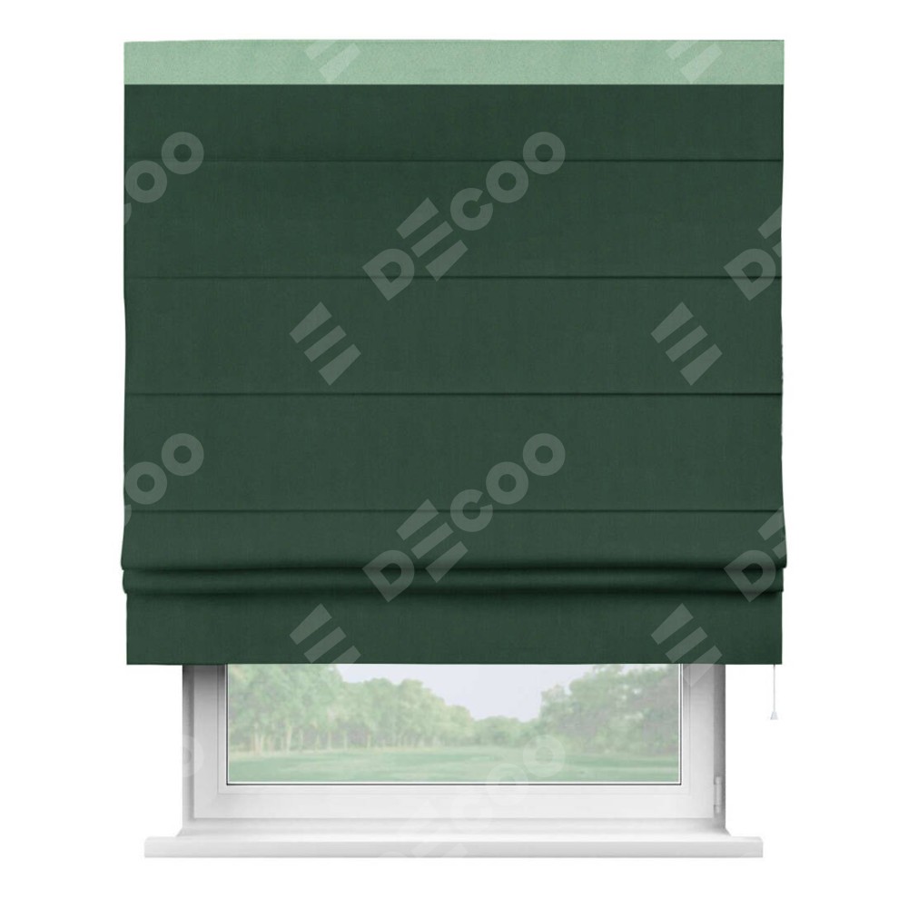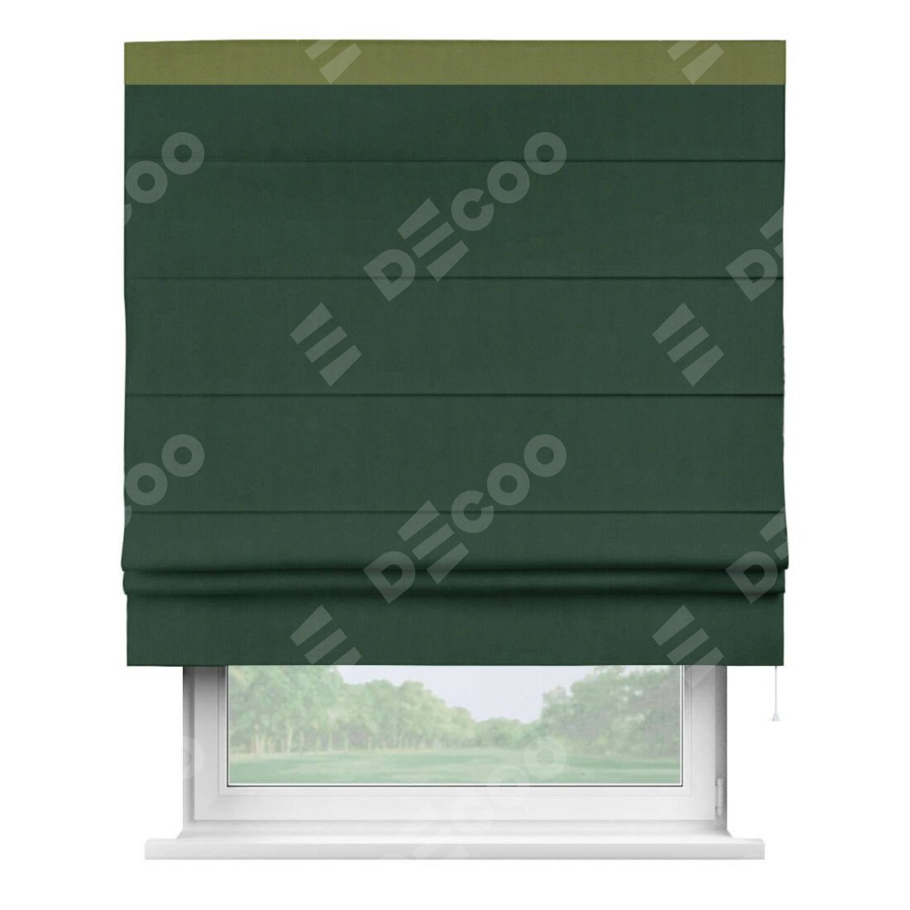 Римская штора «Кортин» для проема, блэкаут однотонный зелёный с кантом Кинг