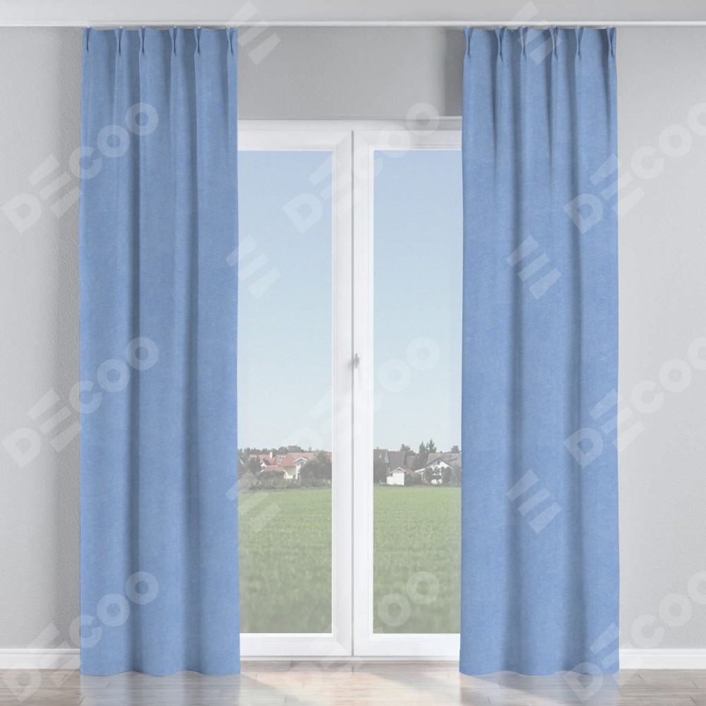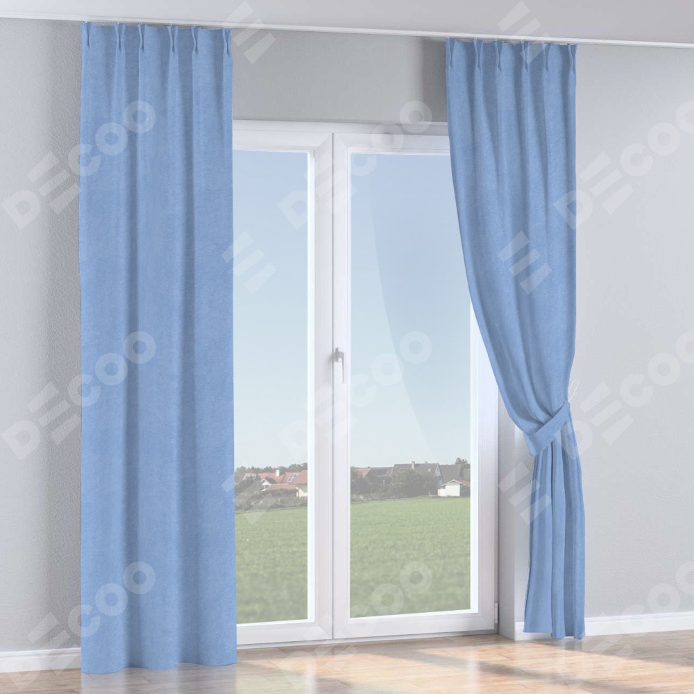 Комплект прямых штор, от производителя «Cortin», пошиты из ткани вельвет васильковый, артикул ткани 33799. С изнаночной стороны в верхней части штор пристрачивается шторная лента с декоративными складками «Кустик». Для создания элегантных складок прямые шторы шьются по стандарту с коэффициентом 1:2 (на 100 см. ширины проёма 200 см. ширины ткани).