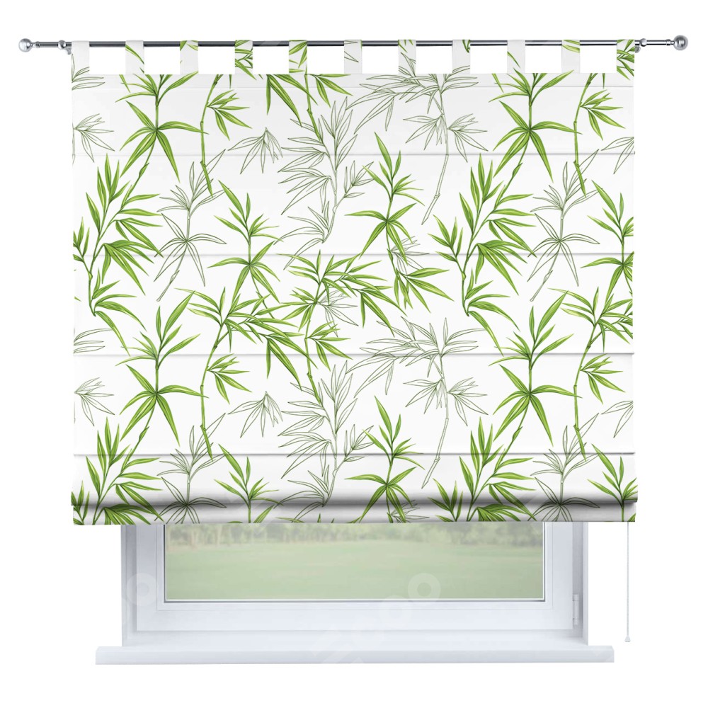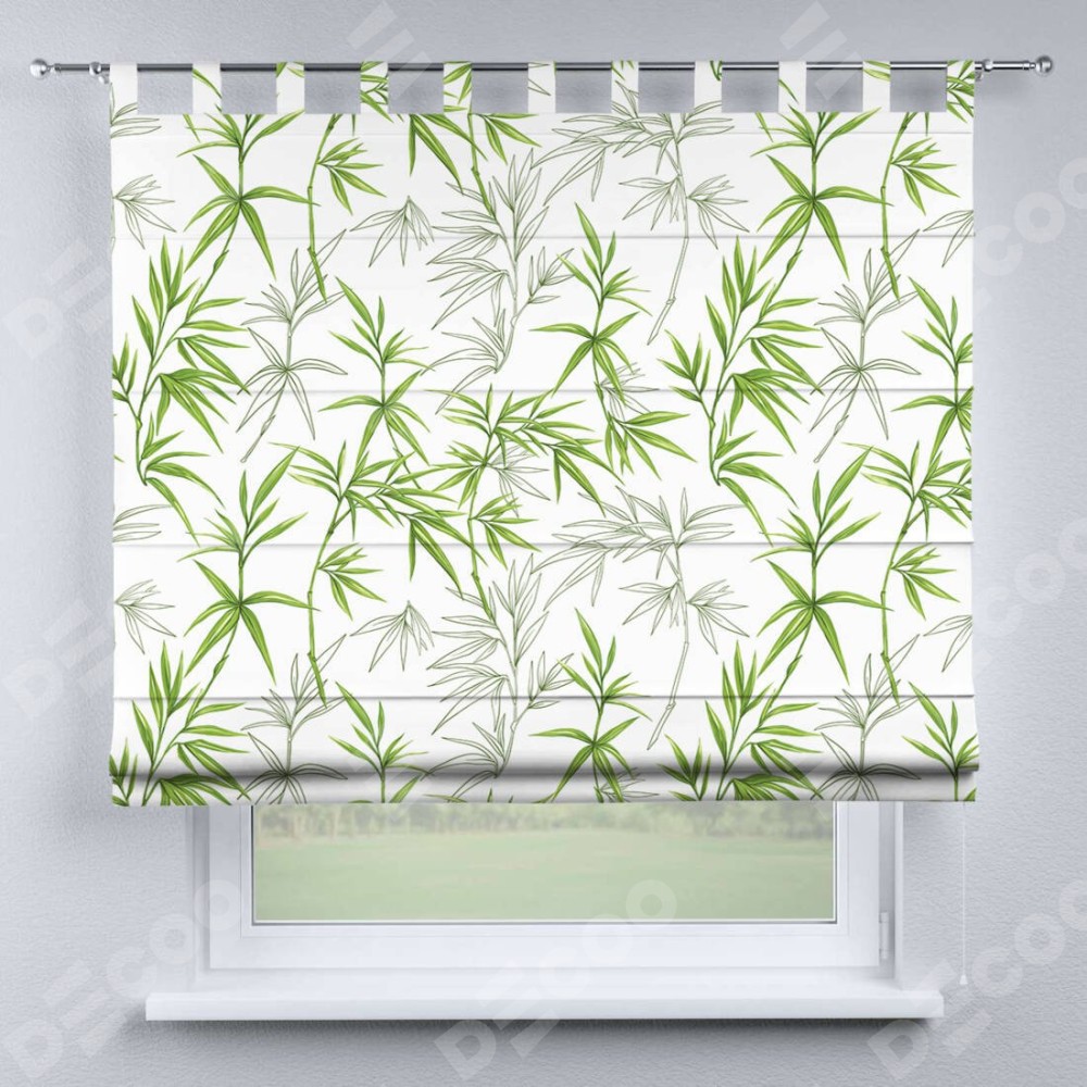 Римская штора производителя «Cortin», используется для проёма, пошита из ткани блэкаут с нанесением сублимационной печати «Зелёный бамбук». Данная модель пошита на петлях, комплектуется на выбор круглым карнизом и подходит для монтажа на стену. Римская штора на петлях имеет простую систему регулировки высоты, отличительным преимуществом данной модели является простой способ монтажа. Достаточно повесить ее на трубу и штора готова!