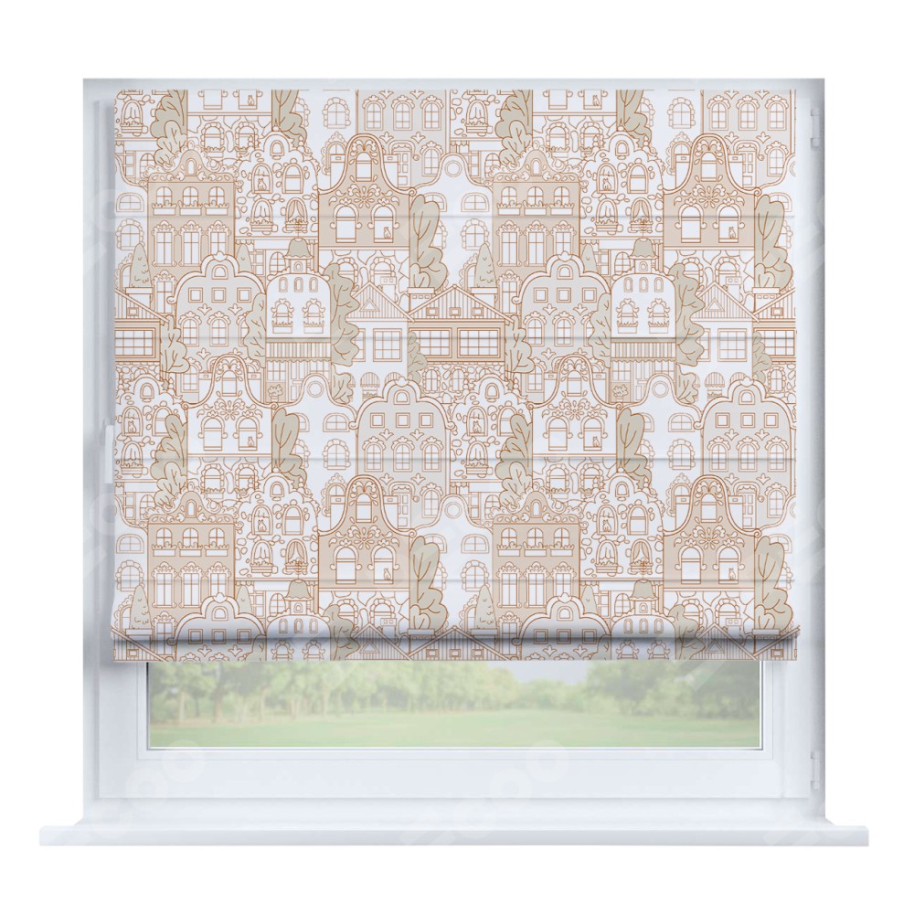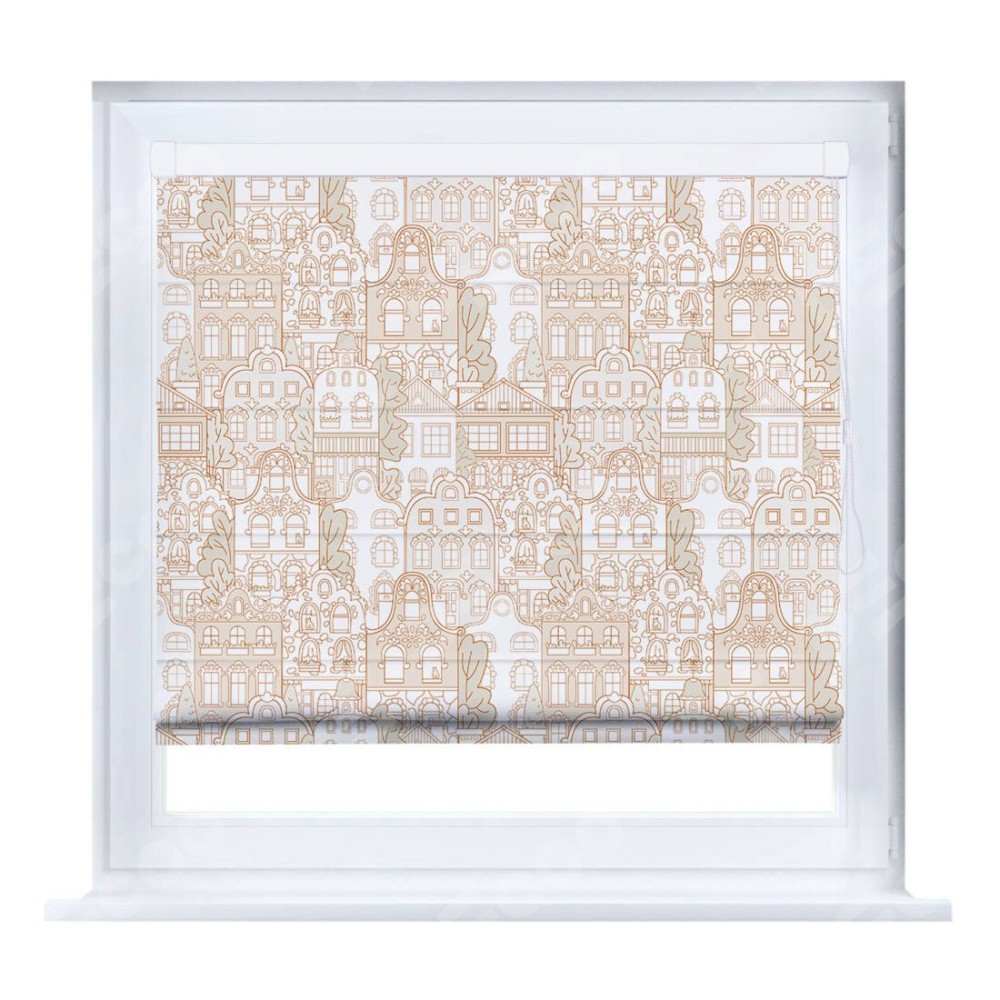 Римская штора производителя «Cortin», устанавливается на створку окна, пошита из ткани блэкаут с нанесением сублимационной печати «Милый городок». Штора шьётся по индивидуальным размерам, для данного типа римской шторы возможная ширина от 35 до 150 см., высота до 250 см.