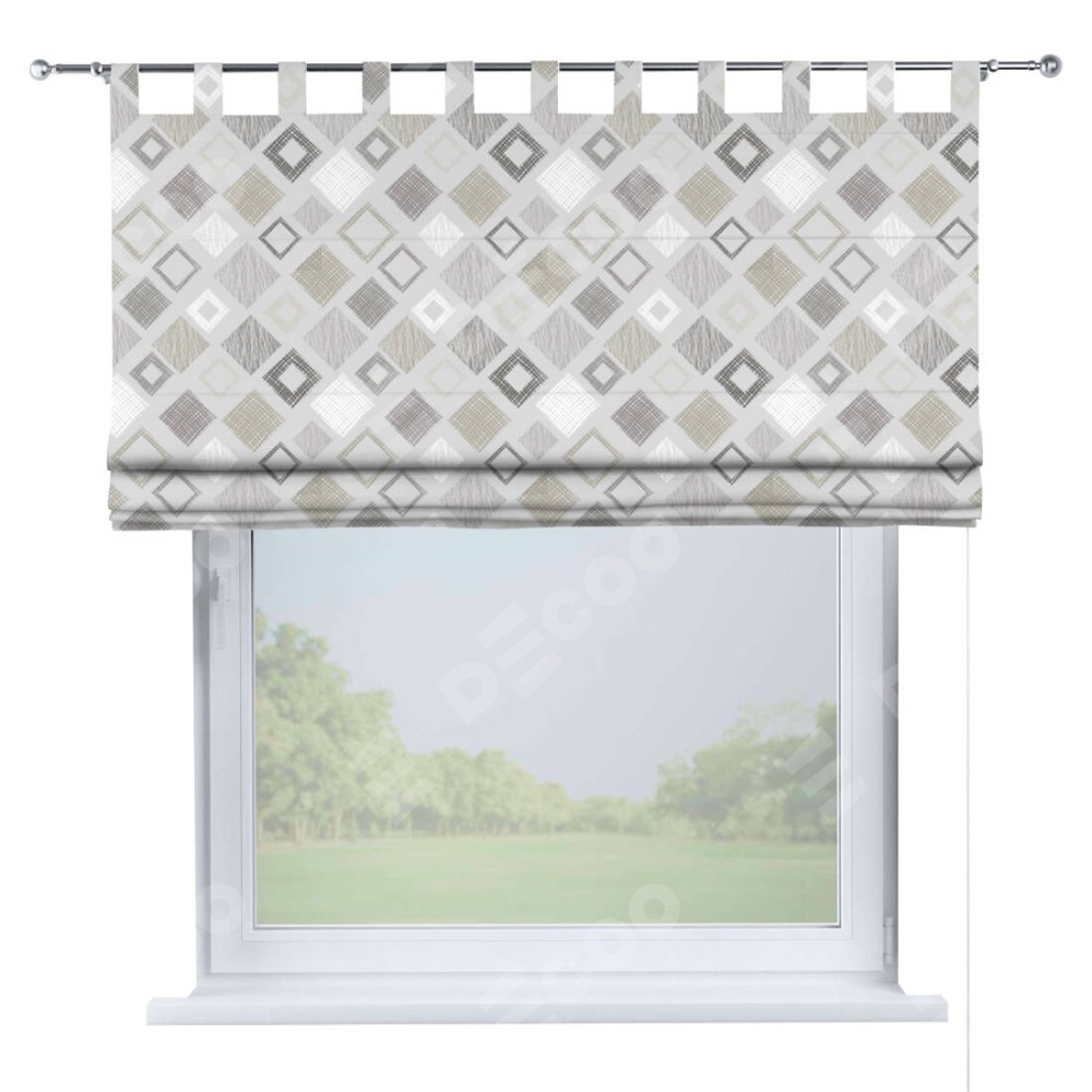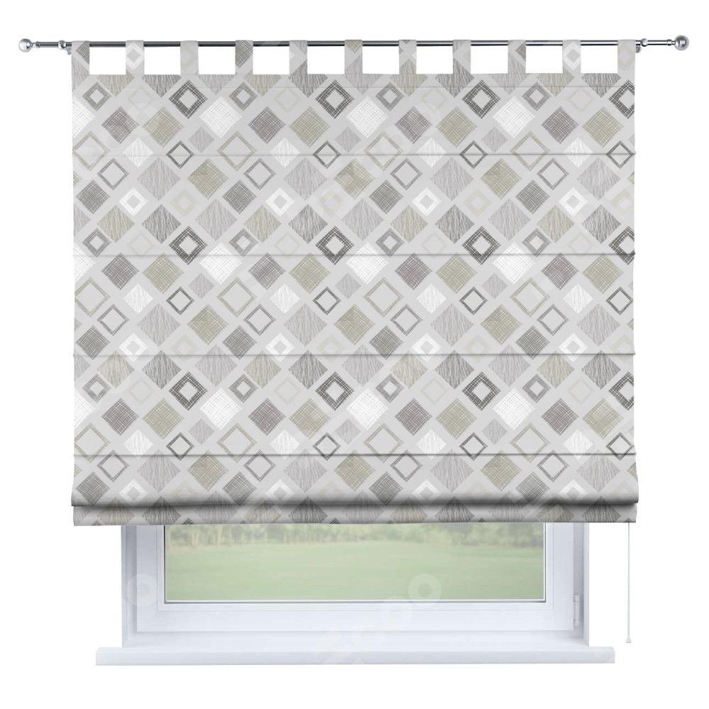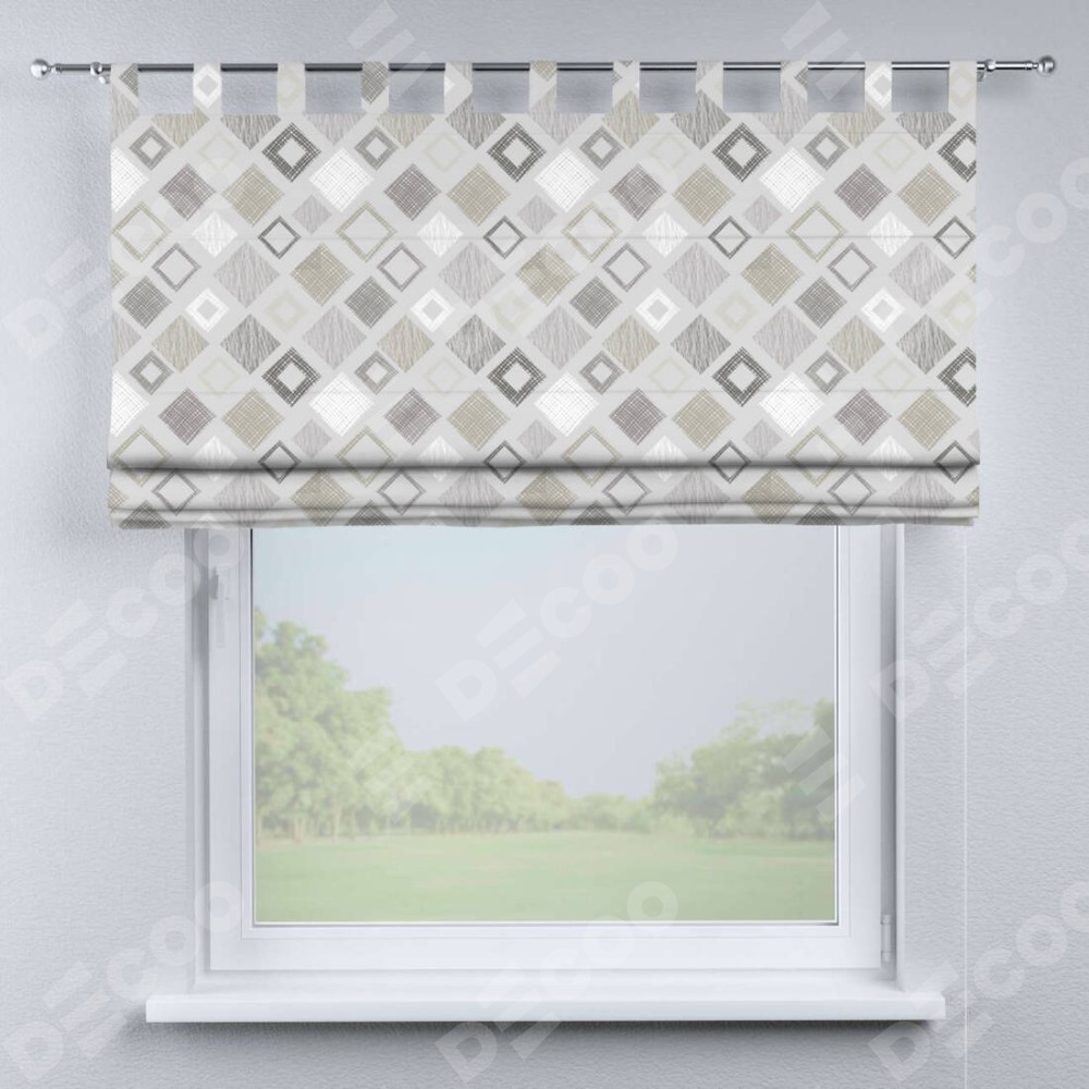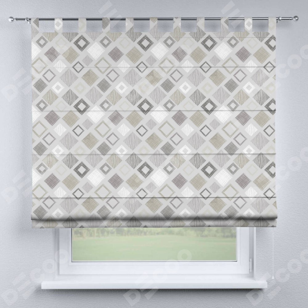 Римская штора производителя «Cortin», используется для проёма, пошита из ткани блэкаут с нанесением сублимационной печати «Квадро». Данная модель пошита на петлях, комплектуется на выбор круглым карнизом и подходит для монтажа на стену. Римская штора на петлях имеет простую систему регулировки высоты, отличительным преимуществом данной модели является простой способ монтажа. Достаточно повесить ее на трубу и штора готова!