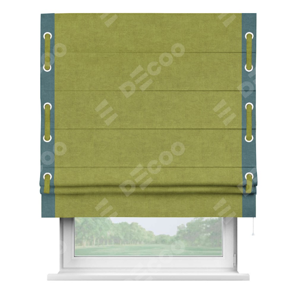 Римская штора «Кортин» для проема, канвас зелёное яблоко, с кантом Стрим Дуо (люверсы с пояском)