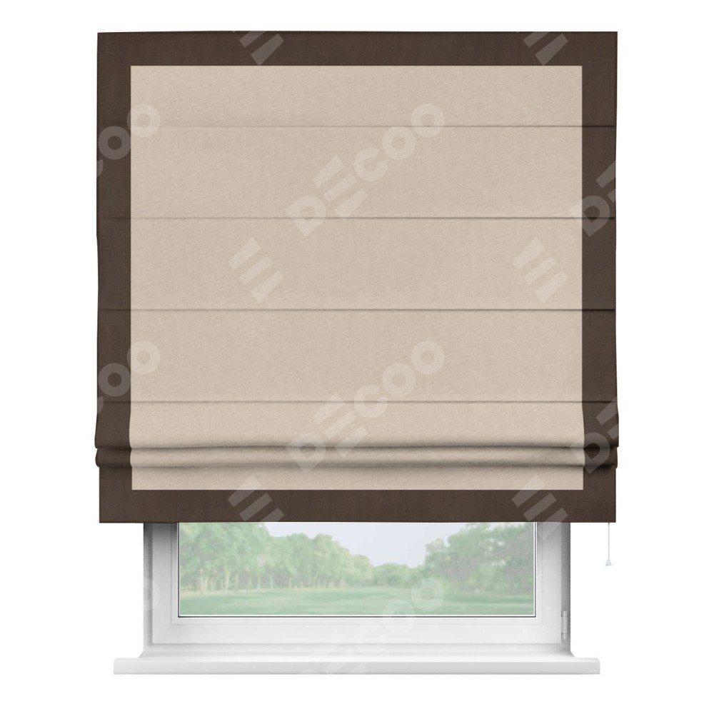 Римская штора «Кортин» для проема, канвас кофе с молоком, с кантом Чесс