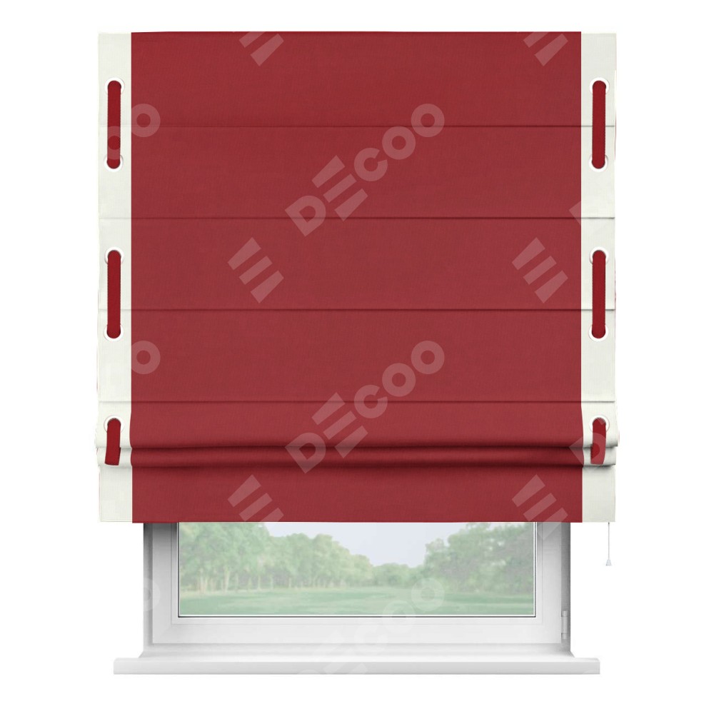 Римская штора «Кортин» для проема, канвас красный, с кантом Стрим Дуо (люверсы с пояском)