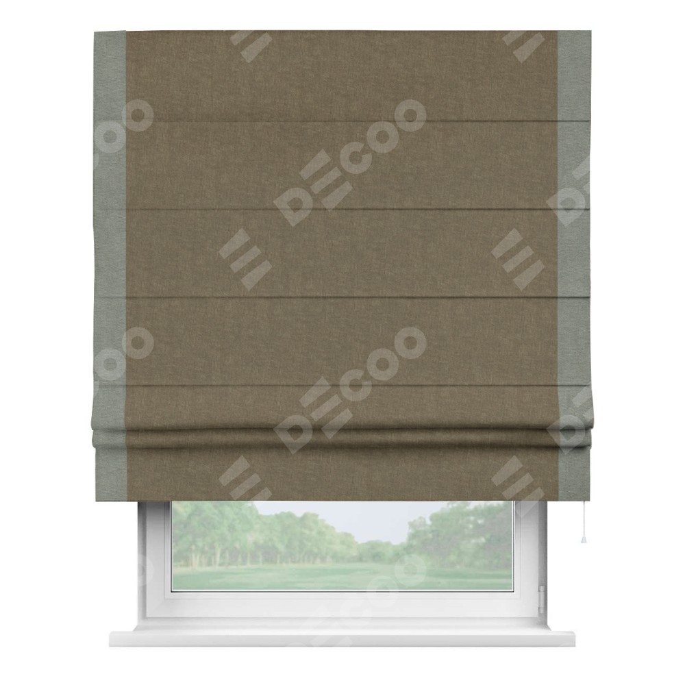 Римская штора «Кортин» для проема, канвас молочный шоколад, с кантом Стрим Дуо