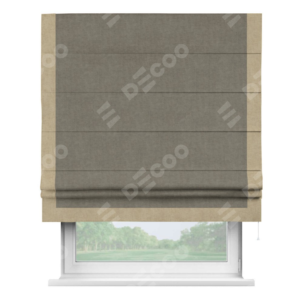 Римская штора «Кортин» для проема, канвас серо-бежевый, с кантом Виктория