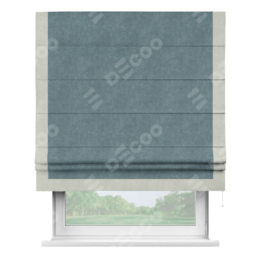Римская штора «Кортин» для проема, канвас серо-голубой, с кантом Виктория