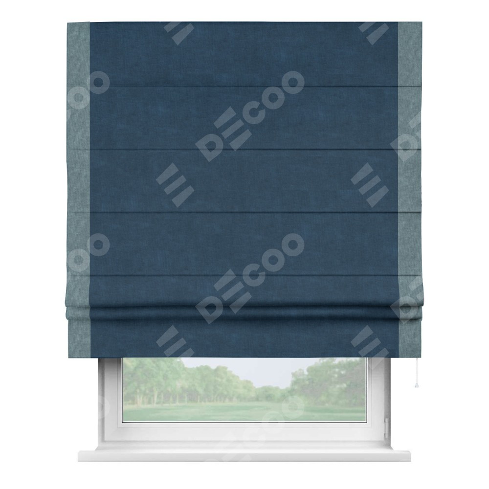 Римская штора «Кортин» для проема, канвас синий, с кантом Стрим Дуо