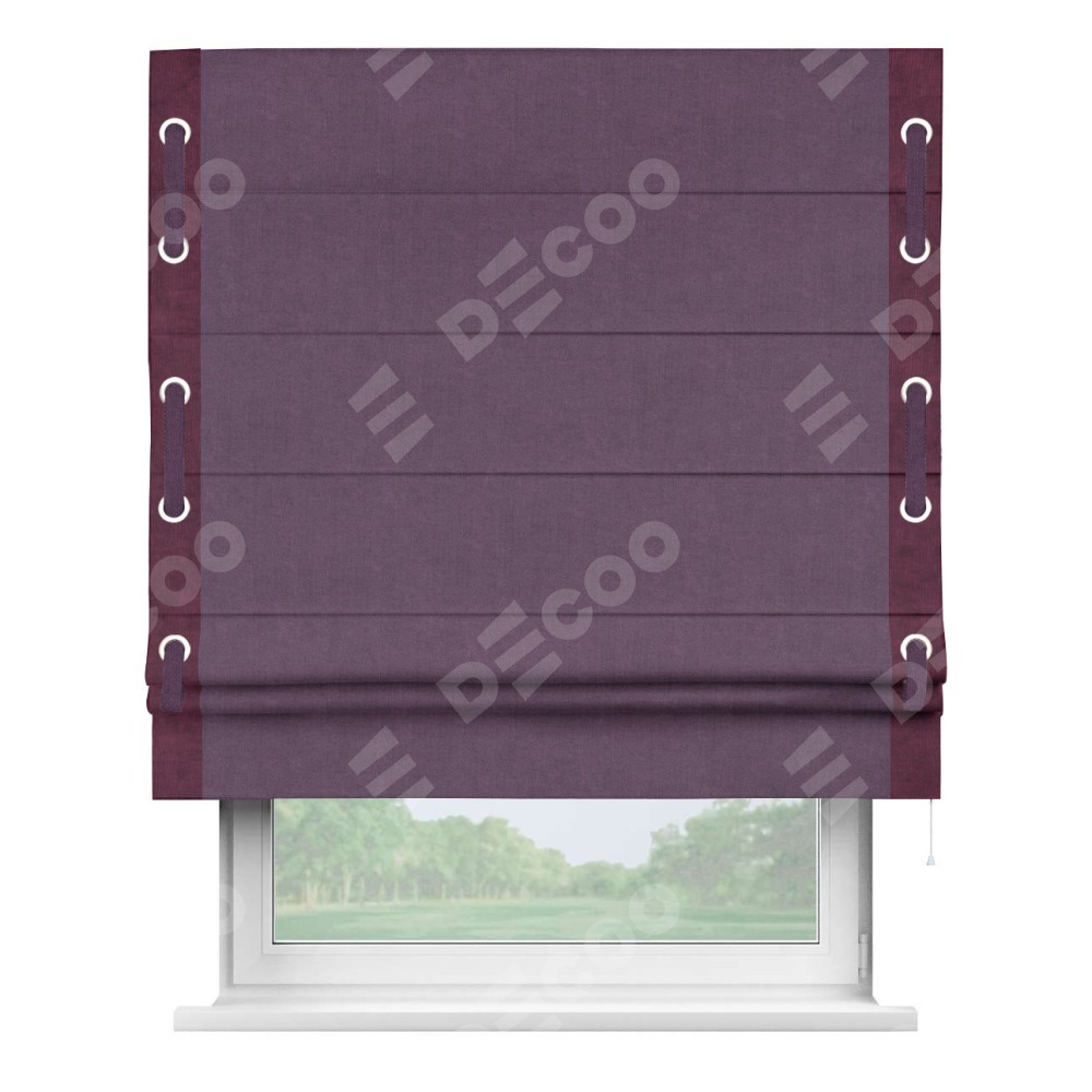 Римская штора «Кортин» для проема, канвас сиреневый, с кантом Стрим Дуо (люверсы с пояском)