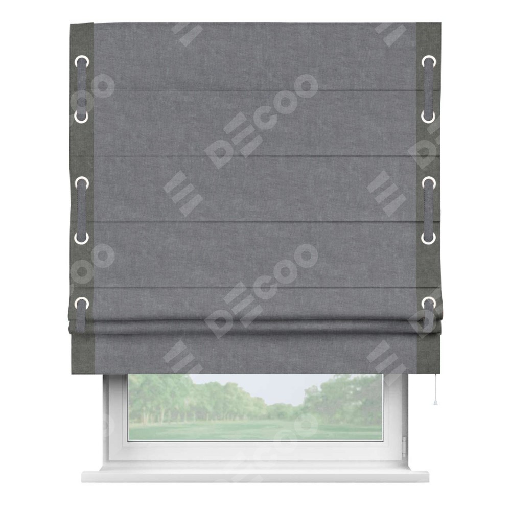 Римская штора «Кортин» для проема, канвас стальной, с кантом Стрим Дуо (люверсы с пояском)
