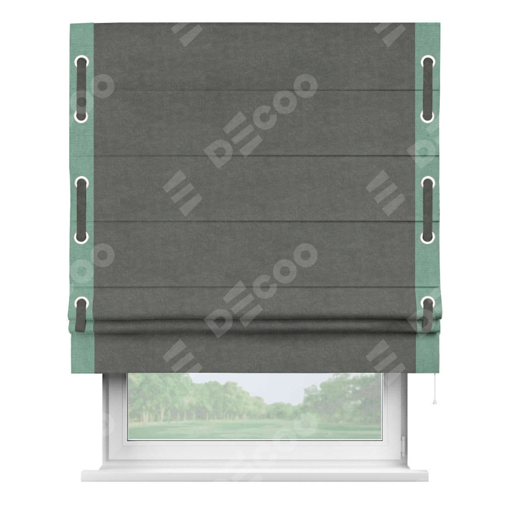 Римская штора «Кортин» для проема, канвас тёмно-серый, с кантом Стрим Дуо (люверсы с пояском)