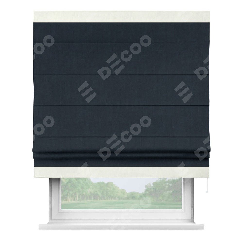 Римская штора «Кортин» для проема, канвас тёмно-синий, с кантом Горизонт