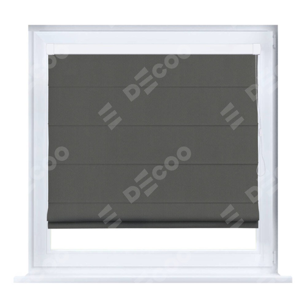Римская штора производителя «Cortin», устанавливается на створку окна, пошита из ткани блэкаут однотонный тёмно-серый, артикул 91570. Штора шьётся по индивидуальным размерам, для данного типа римской шторы возможная ширина от 35 до 150 см., высота до 250 см.