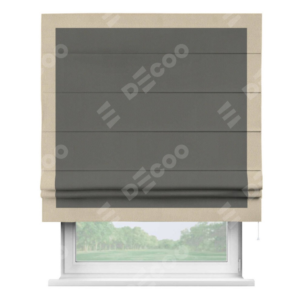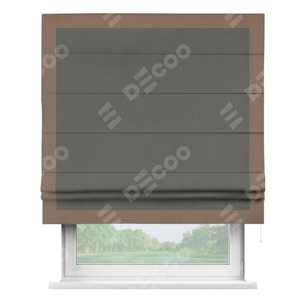 Римская штора «Кортин» для проема, блэкаут однотонный тёмно-серый с кантом Чесс