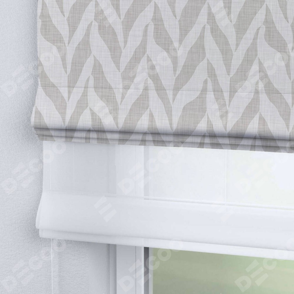 Двойная римская штора «День-ночь» от производителя Cortin предназначена для использования в проёмах. Эта штора уникальна тем, что состоит из двух полотен. На лицевой стороне находится блэкаут с нанесением сублимационной печати «Песочный зебрано», обеспечивающий эффективное затемнение. В комплект также входит вторая ткань — легкий белый тюль (артикул: V-01), который добавляет изящества и легкости оформлению окна. Кроме того, доступны и другие разновидности ткани тюль, выбор которых доступен по ссылке .