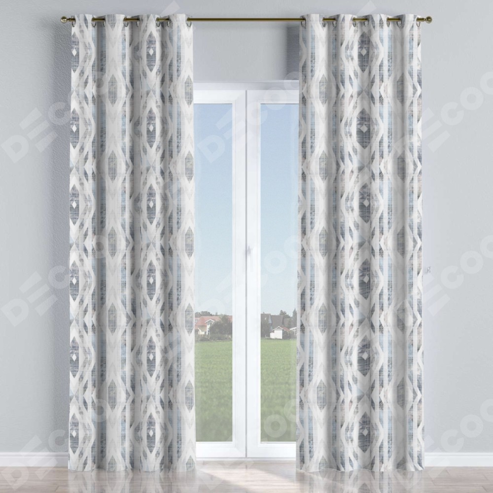 Длина карниза равна ширине окна плюс 30 — 50 см. При расчете длины штанги наконечники не учитываются. Для определения высоты штор измерьте расстояние от верхнего края карниза до пола и отнимите 1 см. Прибавьте 4 см  (гребешок над люверсом) Это габаритный размер вашего изделия.