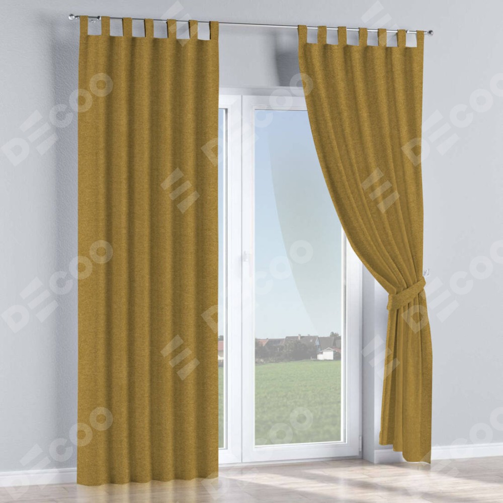Комплект прямых штор, от производителя «Cortin», пошиты из ткани твид блэкаут горчица, артикул ткани 91237. Данная модель пошита на петлях, комплектуется на выбор круглым карнизом и подходит для монтажа на стену или потолок. Прямые шторы на петлях шьются по стандарту с коэффициентом 1/2 (на 100 см. ширины проёма 200 см. ширины ткани), отличительным преимуществом данной модели является простой способ монтажа. Достаточно повесить ее на трубу и штора готова!