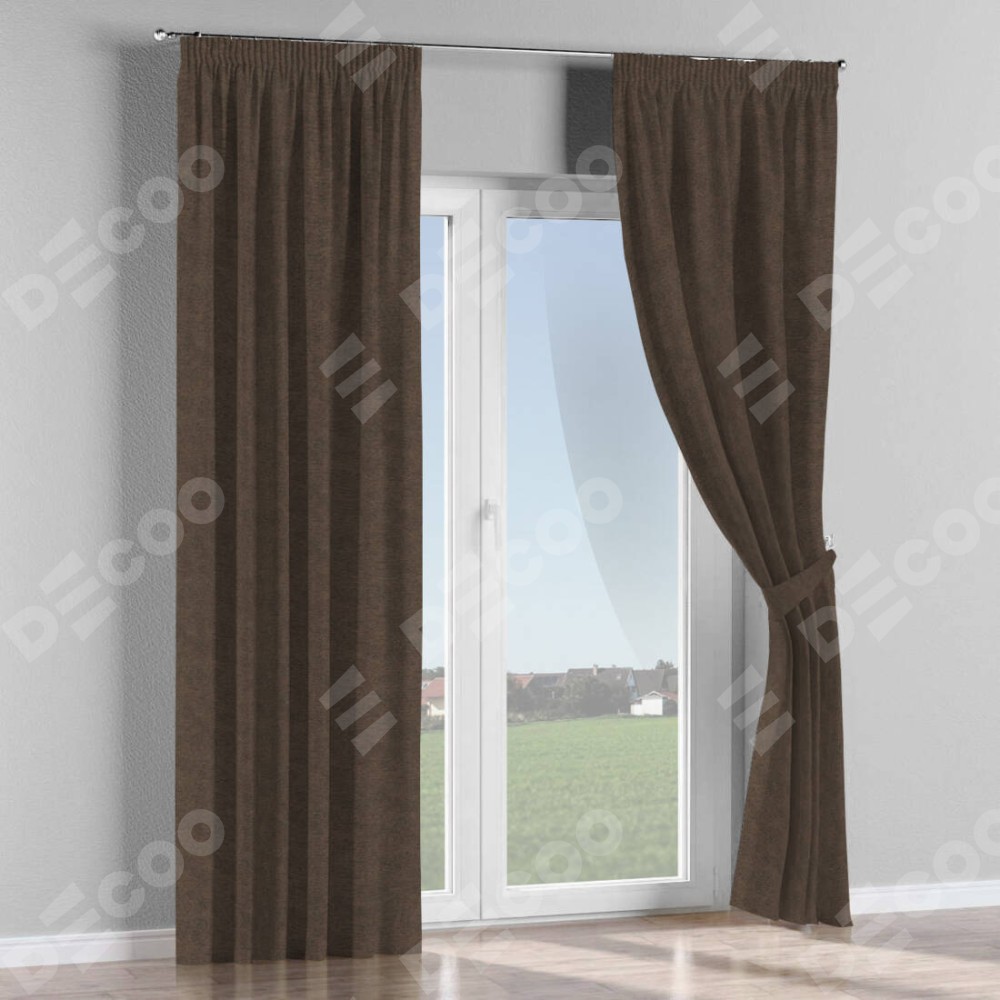 Комплект штор твид блэкаут тёмно-коричневый, на тесьме «Карандаш»