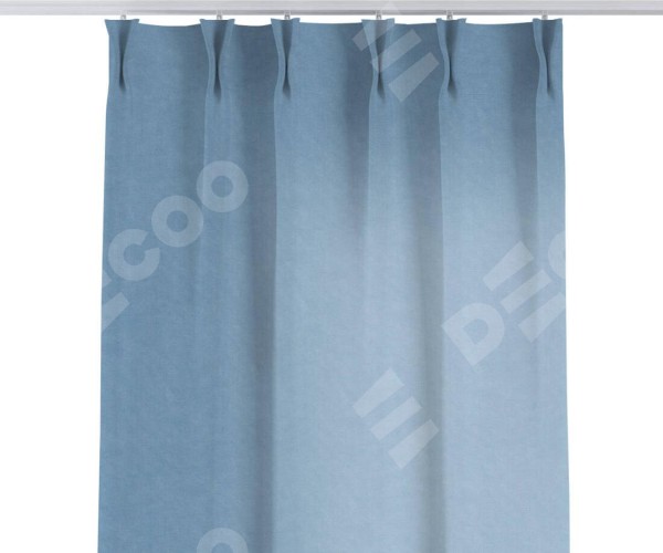 Комплект прямых штор, от производителя «Cortin», пошиты из ткани канвас голубой, артикул ткани 92729. С изнаночной стороны в верхней части штор пристрачивается шторная лента с декоративными складками «Кустик». Для создания элегантных складок прямые шторы шьются по стандарту с коэффициентом 1:2 (на 100 см. ширины проёма 200 см. ширины ткани).