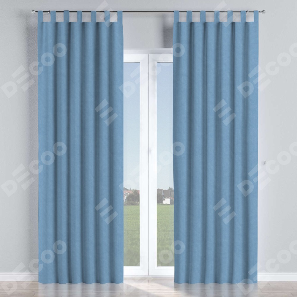 Комплект прямых штор, от производителя «Cortin», пошиты из ткани канвас голубой, артикул ткани 92729. Данная модель пошита на петлях, комплектуется на выбор круглым карнизом и подходит для монтажа на стену или потолок. Прямые шторы на петлях шьются по стандарту с коэффициентом 1/2 (на 100 см. ширины проёма 200 см. ширины ткани), отличительным преимуществом данной модели является простой способ монтажа. Достаточно повесить ее на трубу и штора готова!