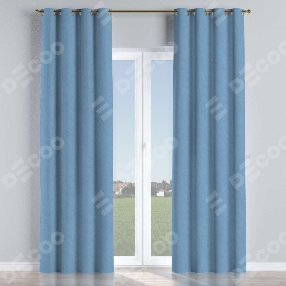 Комплект прямых штор, от производителя «Cortin», пошиты из ткани канвас голубой, артикул ткани 92729. Данная модель пошита на люверсах, комплектуется на выбор круглым карнизом и подходит для монтажа на стену или потолок. Прямые шторы на люверсах шьются по стандарту с коэффициентом 1/2 (на 100 см. ширины проёма 200 см. ширины ткани), отличительным преимуществом данной модели является простой способ монтажа. Достаточно повесить ее на трубу и штора готова!