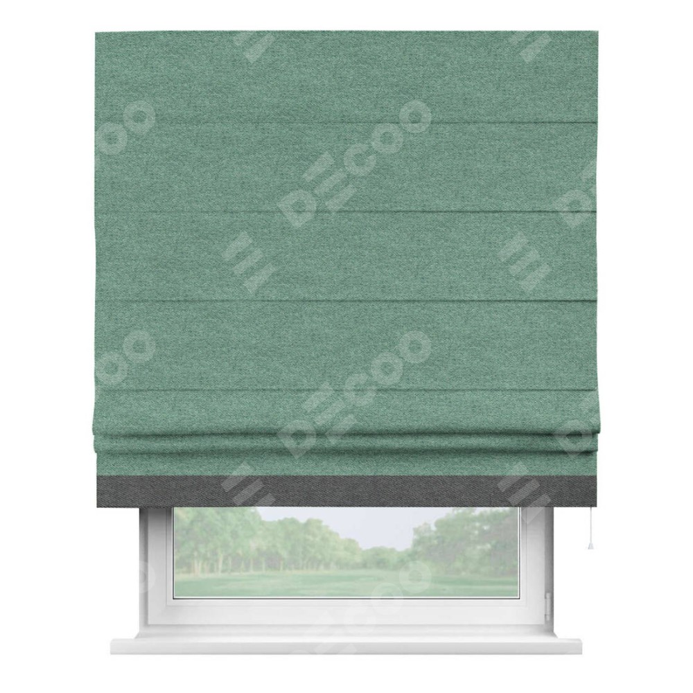 Римская штора «Кортин» с кантом Джестер, для проема, твид блэкаут бирюзовый