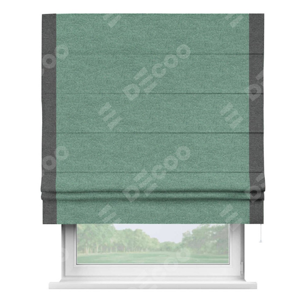 Римская штора «Кортин» с кантом Стрим Дуо, для проема, твид блэкаут бирюзовый