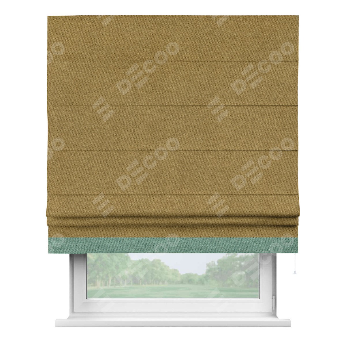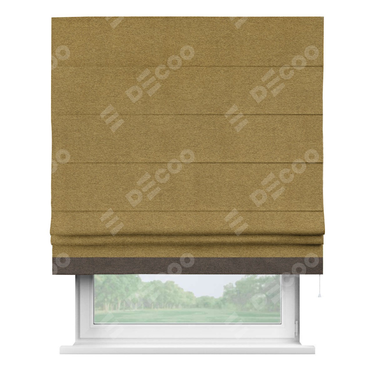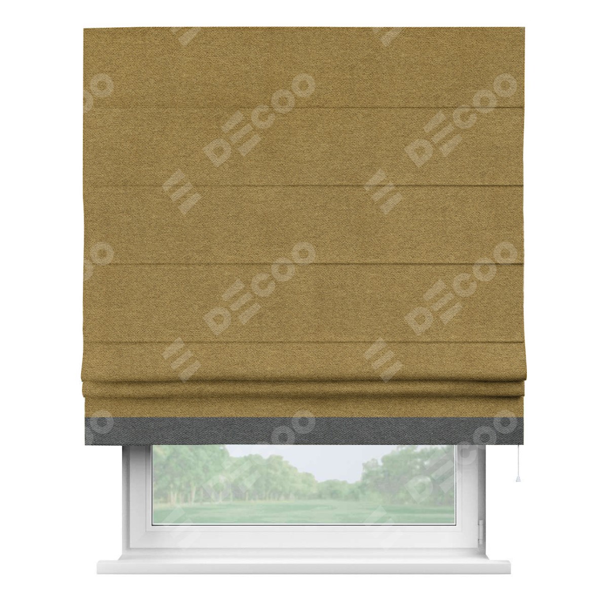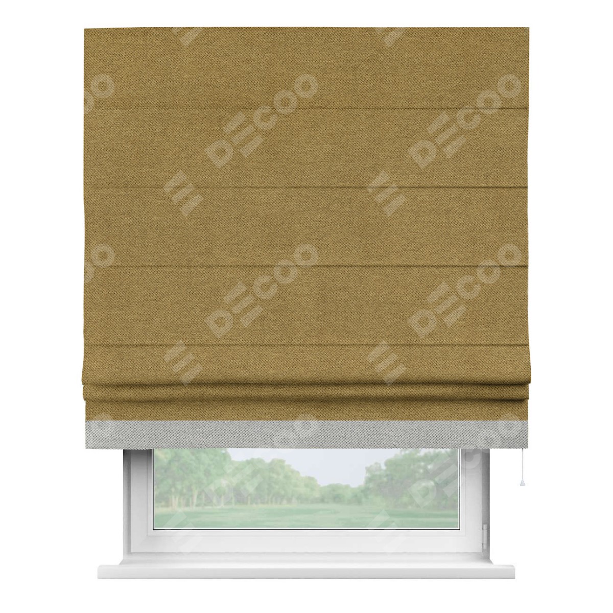 Римская штора «Кортин» с кантом Джестер, для проема, твид блэкаут горчица