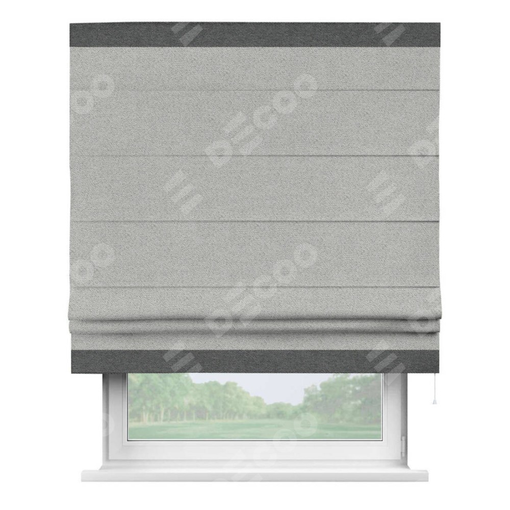 Римская штора «Кортин» для проема, твид блэкаут светло-серый, с кантом Горизонт
