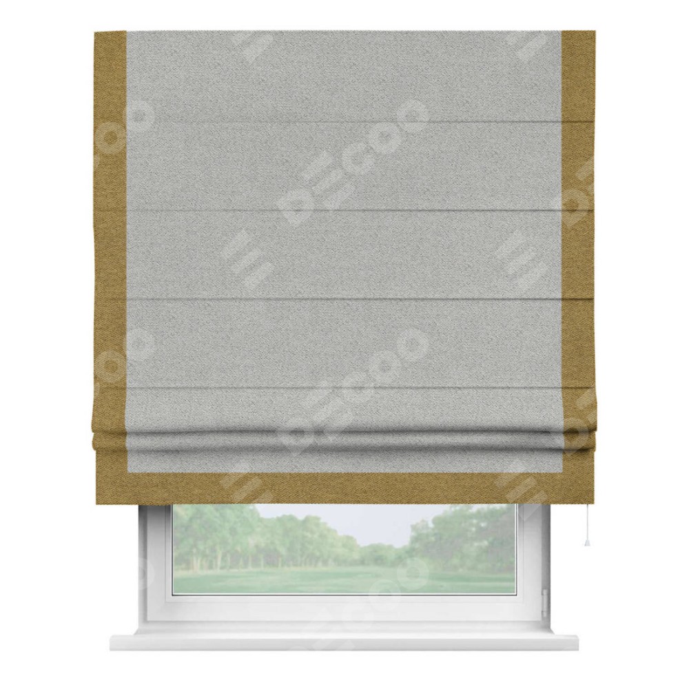 Римская штора «Кортин» для проема, твид блэкаут светло-серый, с кантом Виктория