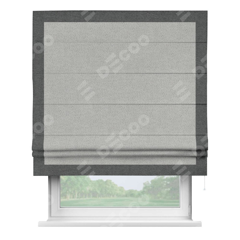 Римская штора «Кортин» для проема, твид блэкаут светло-серый, с кантом Чесс