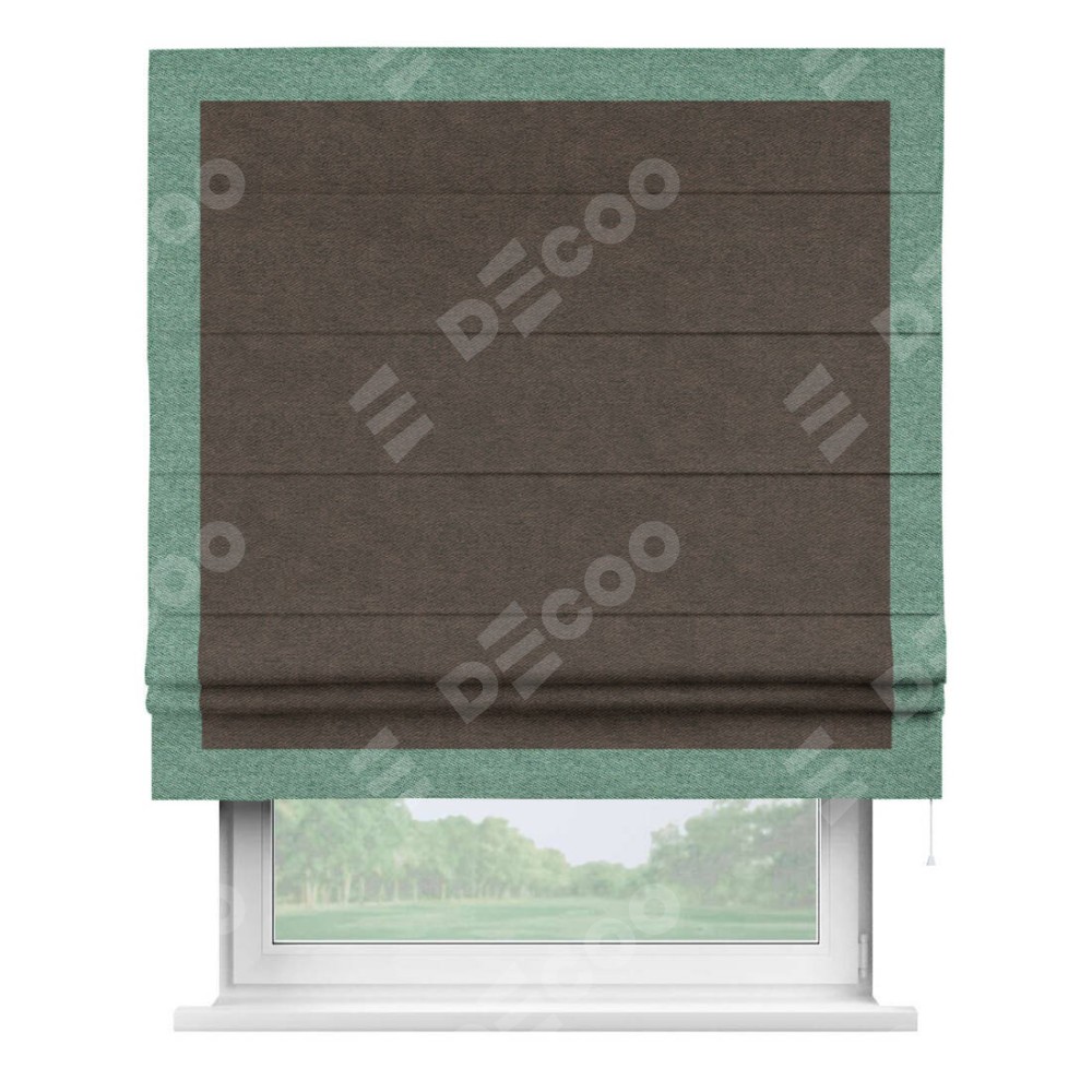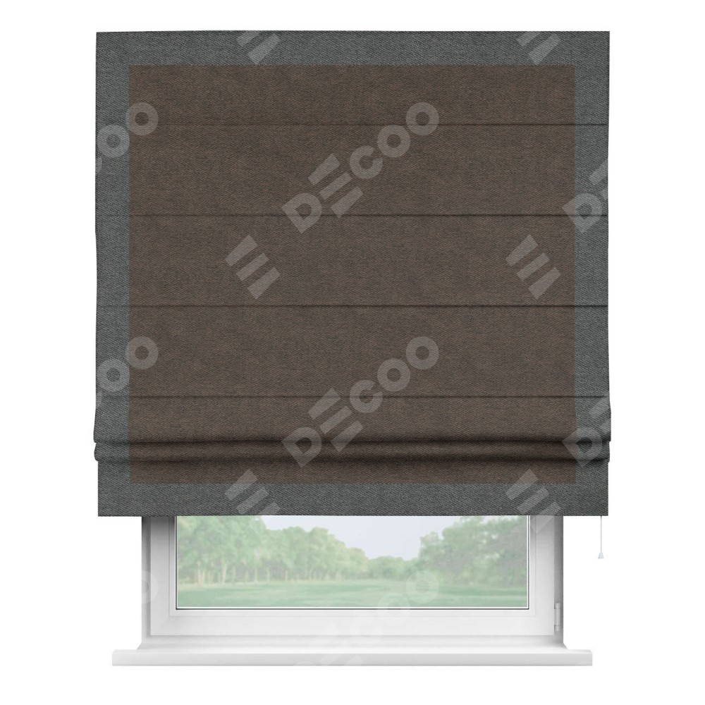 Римская штора «Кортин» для проема, твид блэкаут тёмно-коричневый, с кантом Чесс