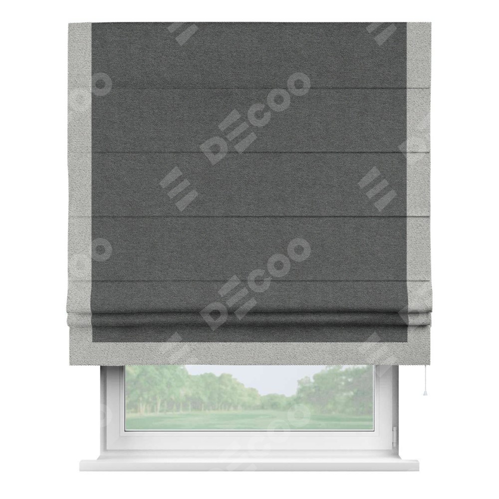 Римская штора «Кортин» для проема, твид блэкаут тёмно-серый, с кантом Виктория