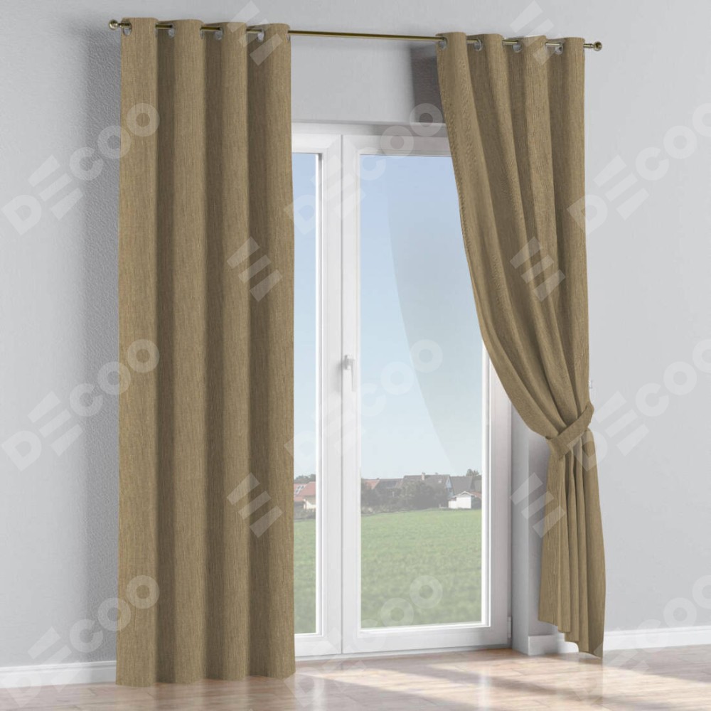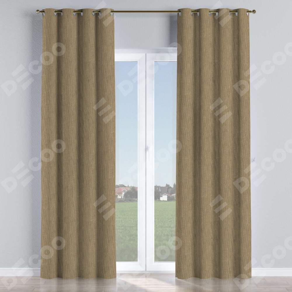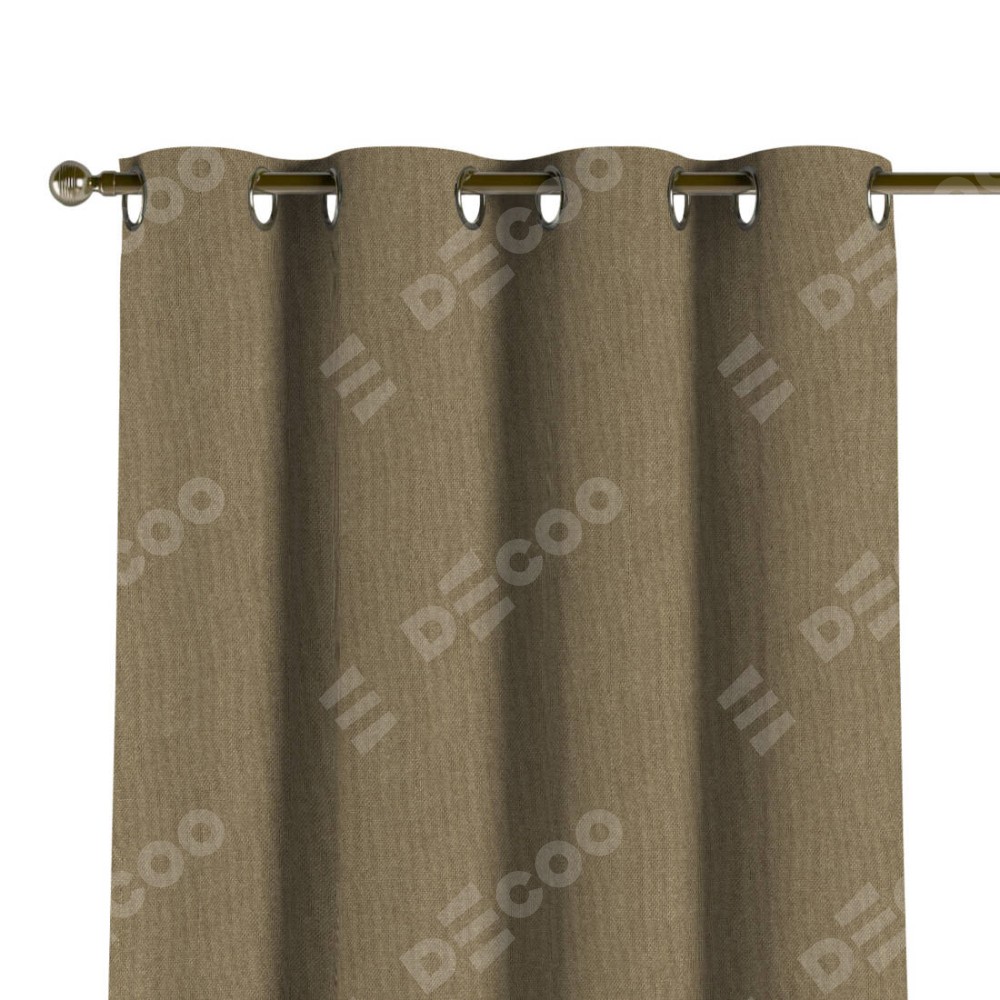 Комплект прямых штор, от производителя «Cortin», пошиты из ткани лён димаут тёмно-бежевый, артикул ткани 16261. Данная модель пошита на люверсах, комплектуется на выбор круглым карнизом и подходит для монтажа на стену или потолок. Прямые шторы на люверсах шьются по стандарту с коэффициентом 1/2 (на 100 см. ширины проёма 200 см. ширины ткани), отличительным преимуществом данной модели является простой способ монтажа. Достаточно повесить ее на трубу и штора готова!
